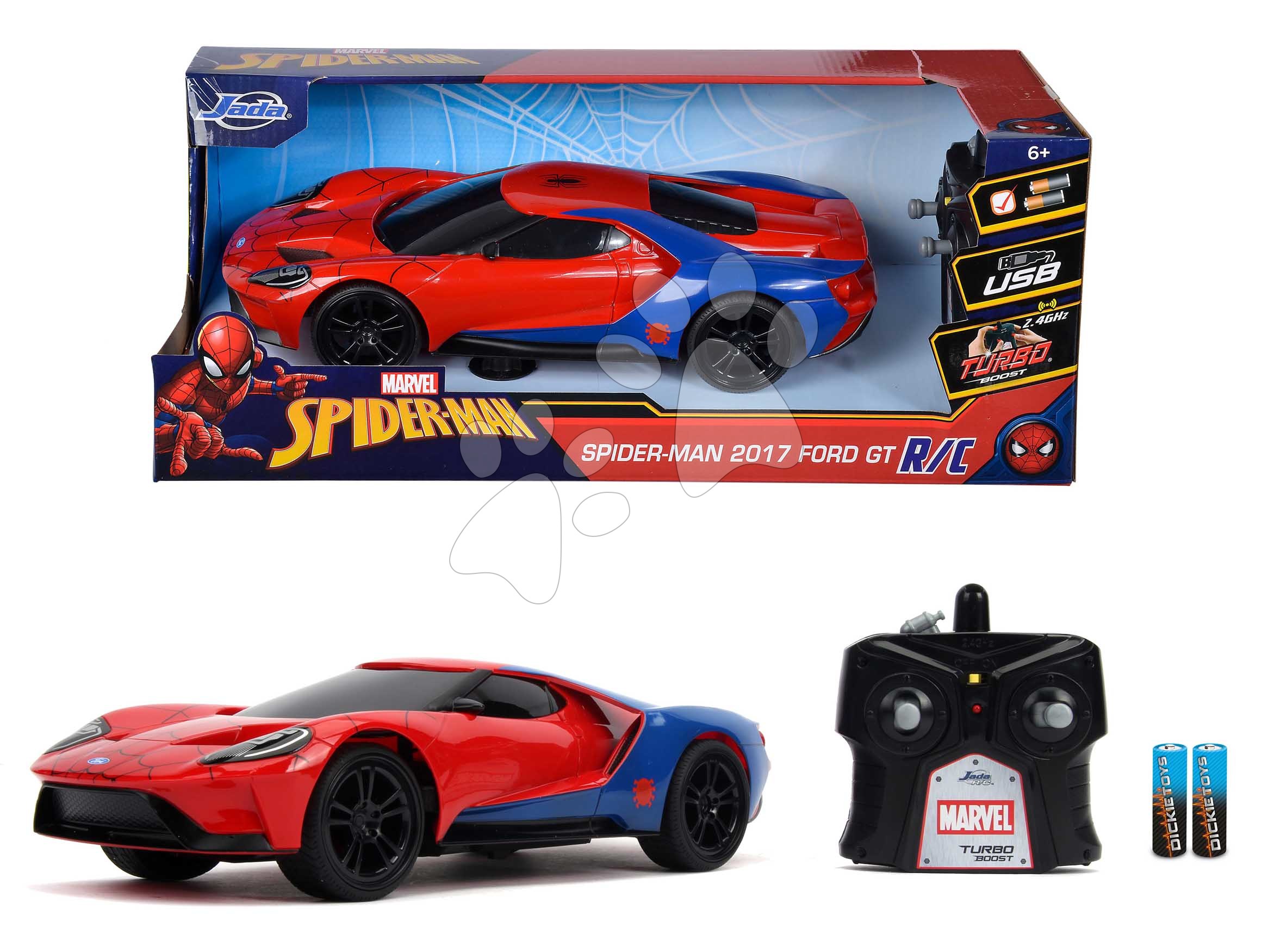Autíčko na diaľkové ovládanie RC Marvel Spiderman 2027 Ford GT Jada dĺžka 29 cm 1:16 od 6 rokov JA30760314R05