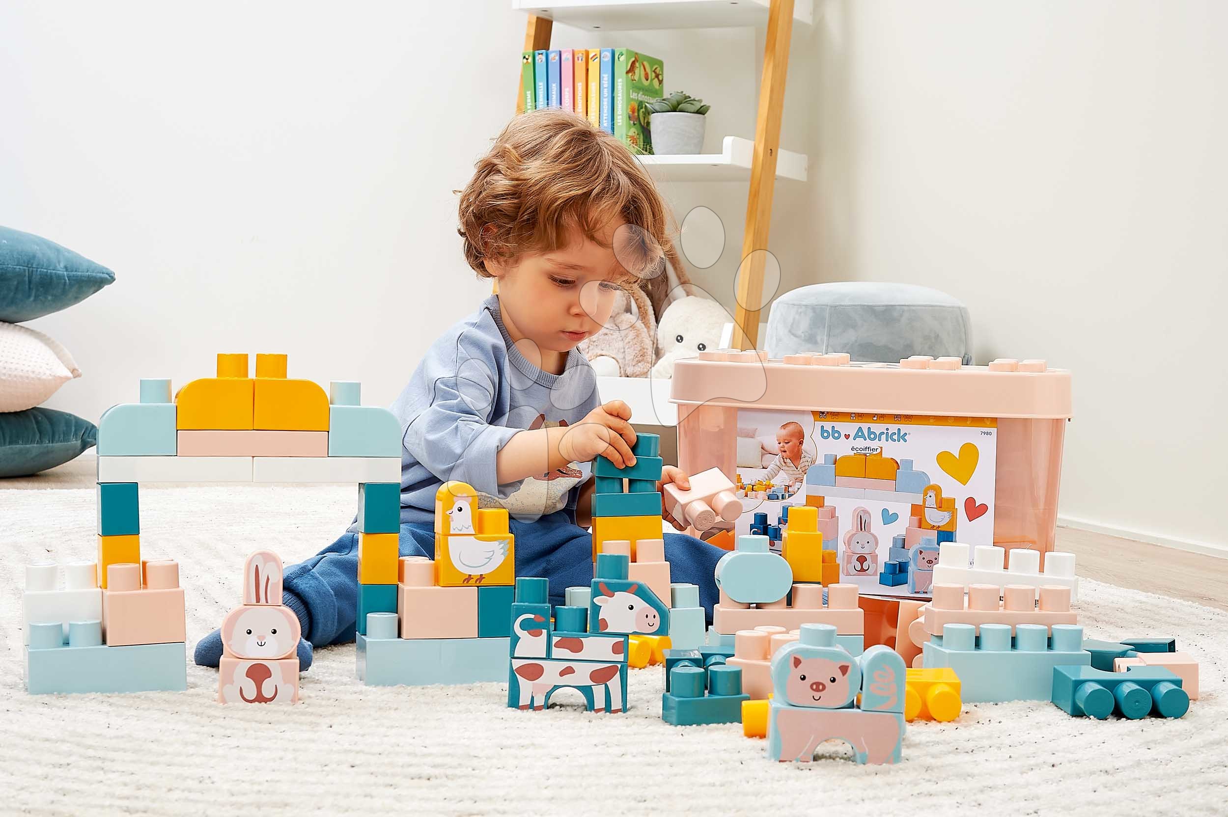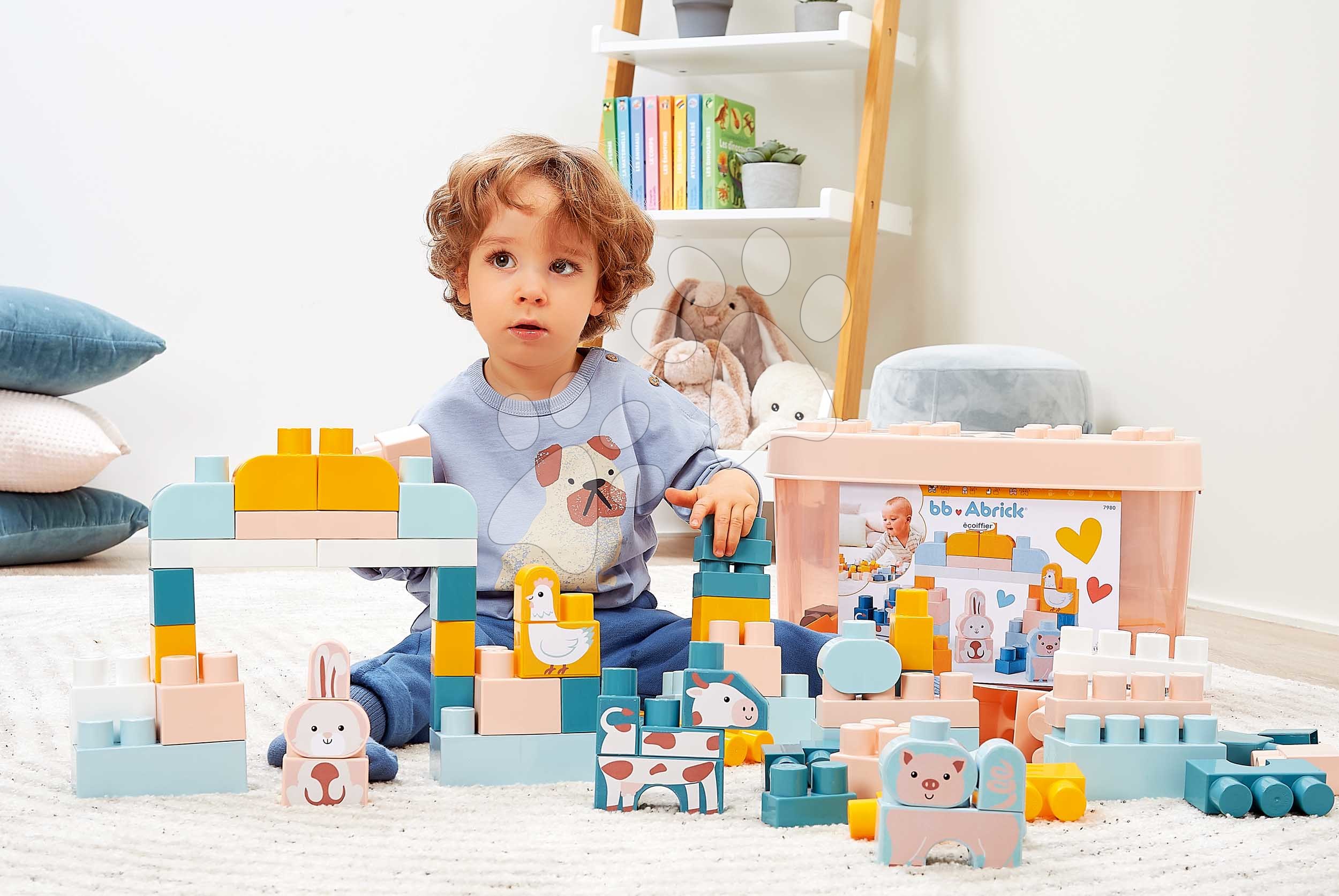 Baukasten mit Tieren BB Abrick Écoiffier ist ein tolles Geschenk für alle kreativen Kinder ab 12 Monaten. Im Set finden sie 55 bunte Bausteine in sanften Farben, aus denen sie verschiedene Bauwerke und Tierfiguren zusammensetzen können. Die großen Steine lassen sich leicht greifen und einfach zusammenstecken – sie machen auch älteren Kindern Spaß. Das komplette Set wird in einer praktischen Aufbewahrungsbox geliefert, die jedes Kind begeistern wird. Die Box mit rosa Deckel sorgt außerdem dafür, dass im Kinderzimmer kein Chaos durch verstreute Bausteine entsteht. Nach dem Spielen können die Kleinen alle Teile einfach einsammeln und ordentlich verstauen.