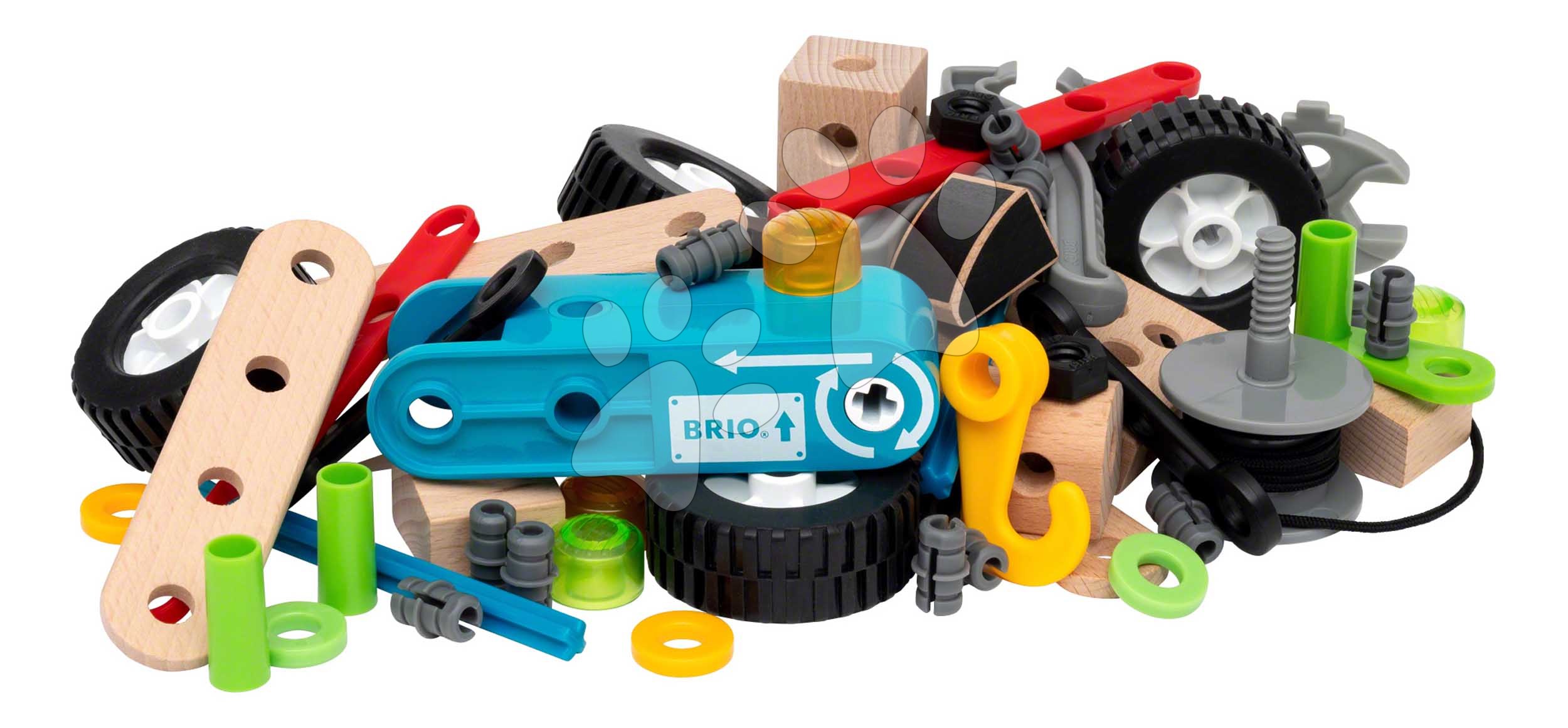 Drevená stavebnica s naťahovacím motorom Builder Motor Set BRIO 66 dielov s pracovným náradím od 3 rokov BRIO5957