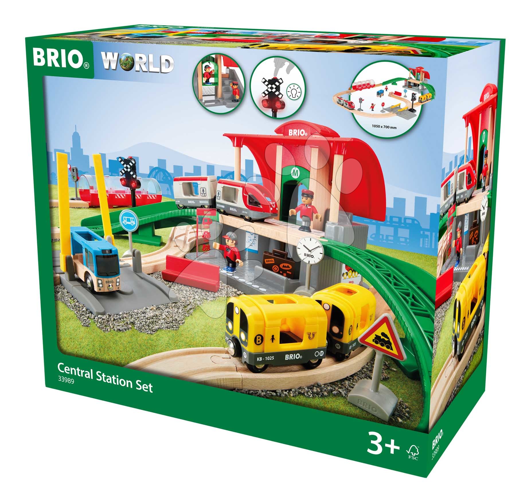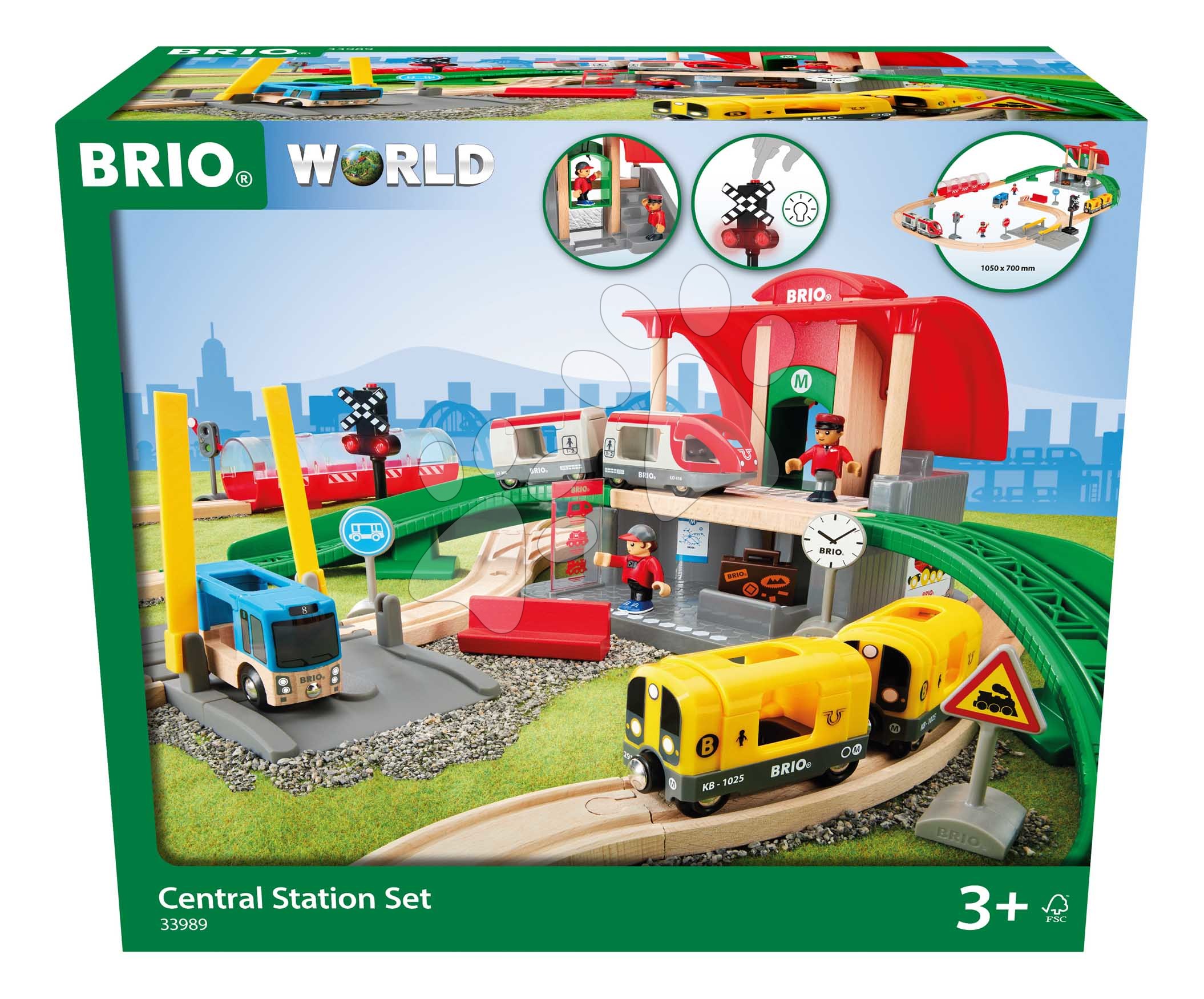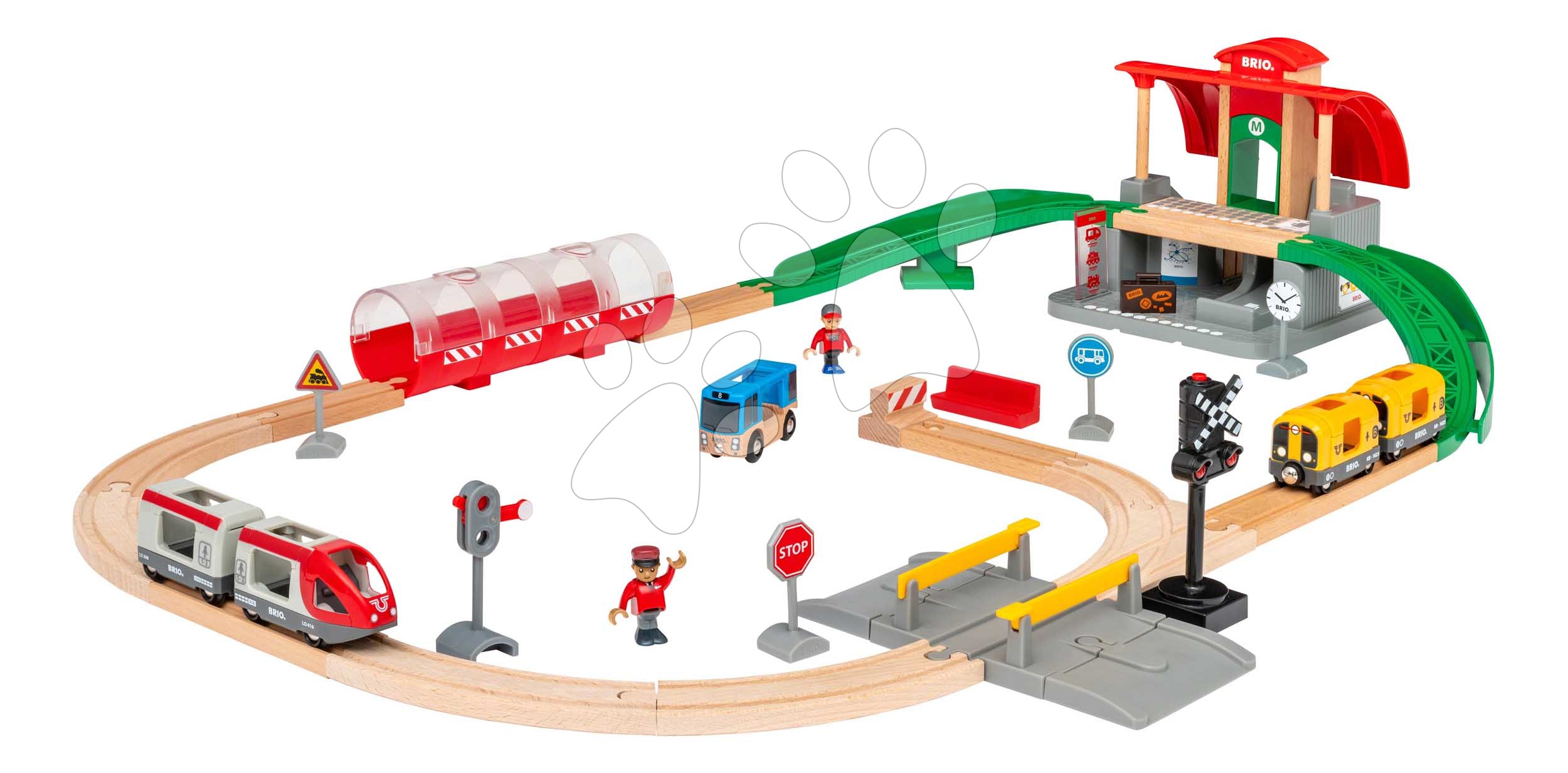 Drevená vláčikodráha so železničnou stanicou Central Station Set BRIO 37 dielov so svetelnou signalizáciou od 3 rokov BRIO9895