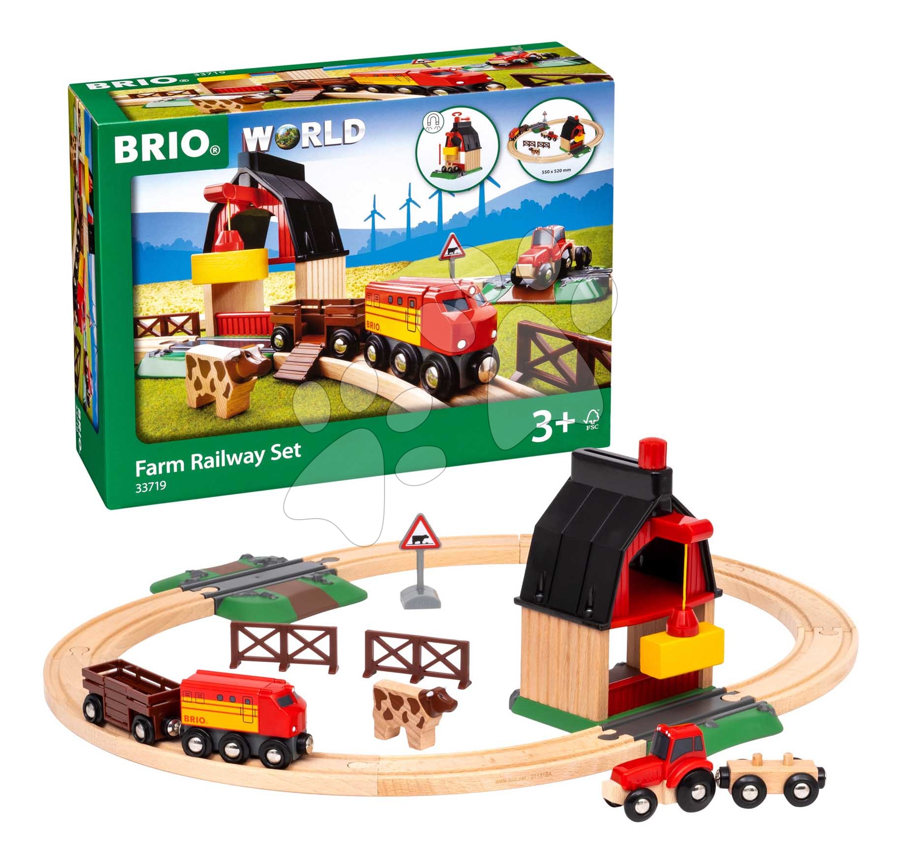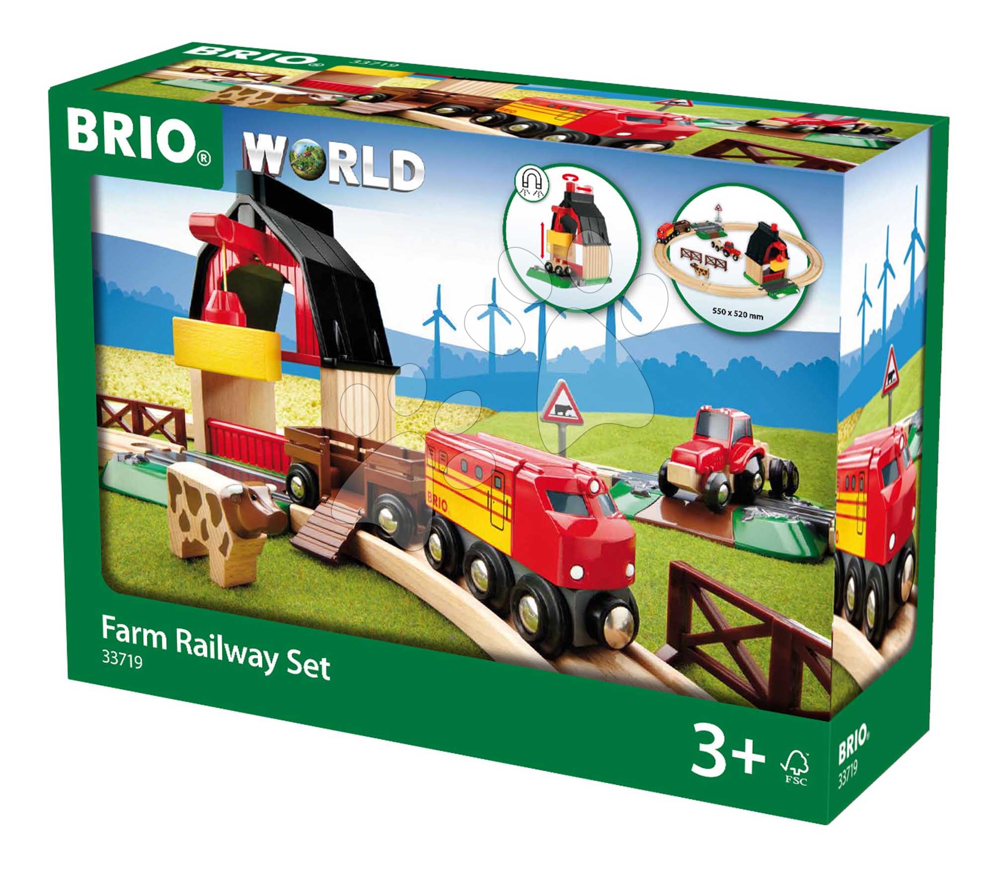 Drevená vláčikodráha Farma Railway Set Farm BRIO 20 dielov s vláčikom traktorom a magnetický žeriav od 3 rokov BRIO7198