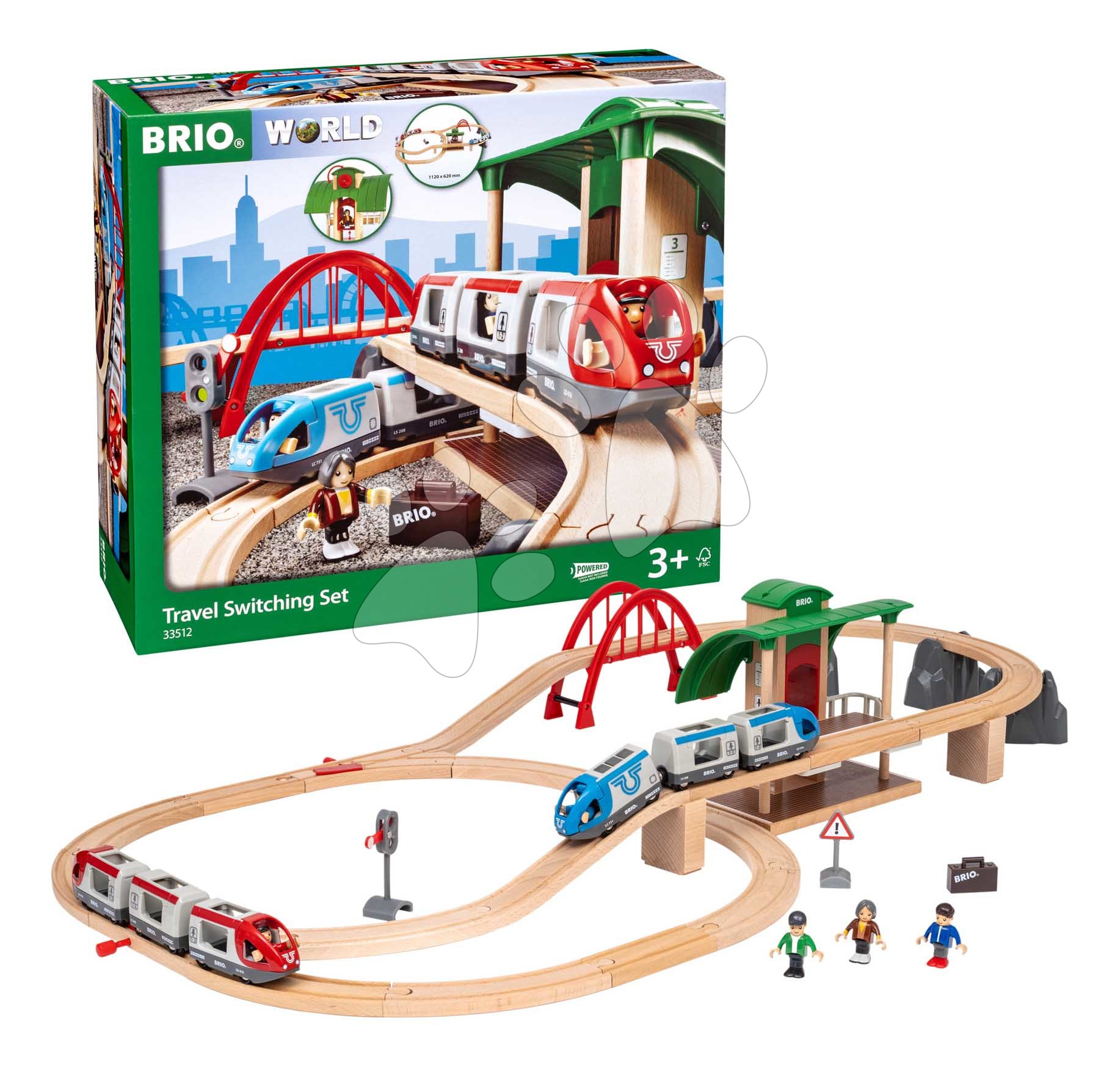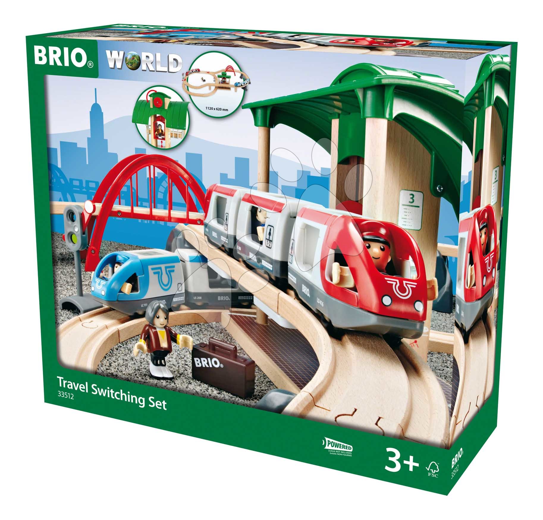 Drevená vláčikodráha s nástupiskom Travel Switching Set BRIO 42 dielov s elektronickým a klasickým vláčikom od 3 rokov BRIO5125