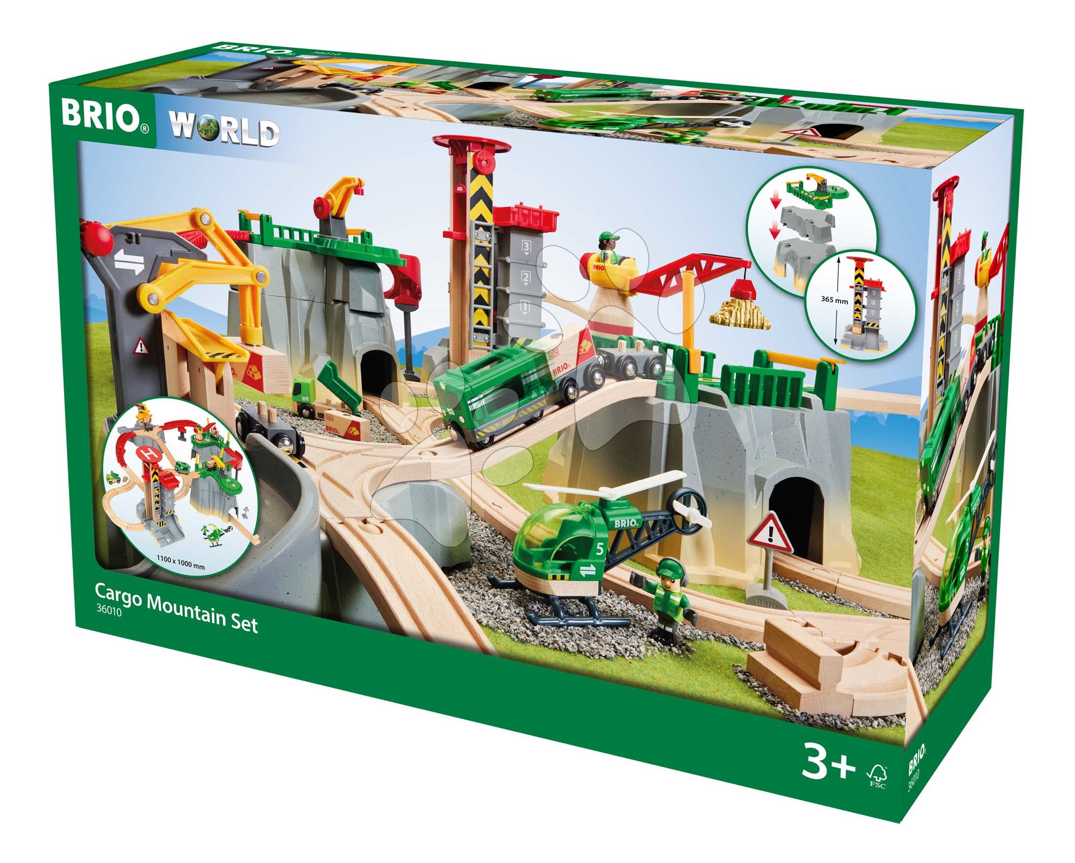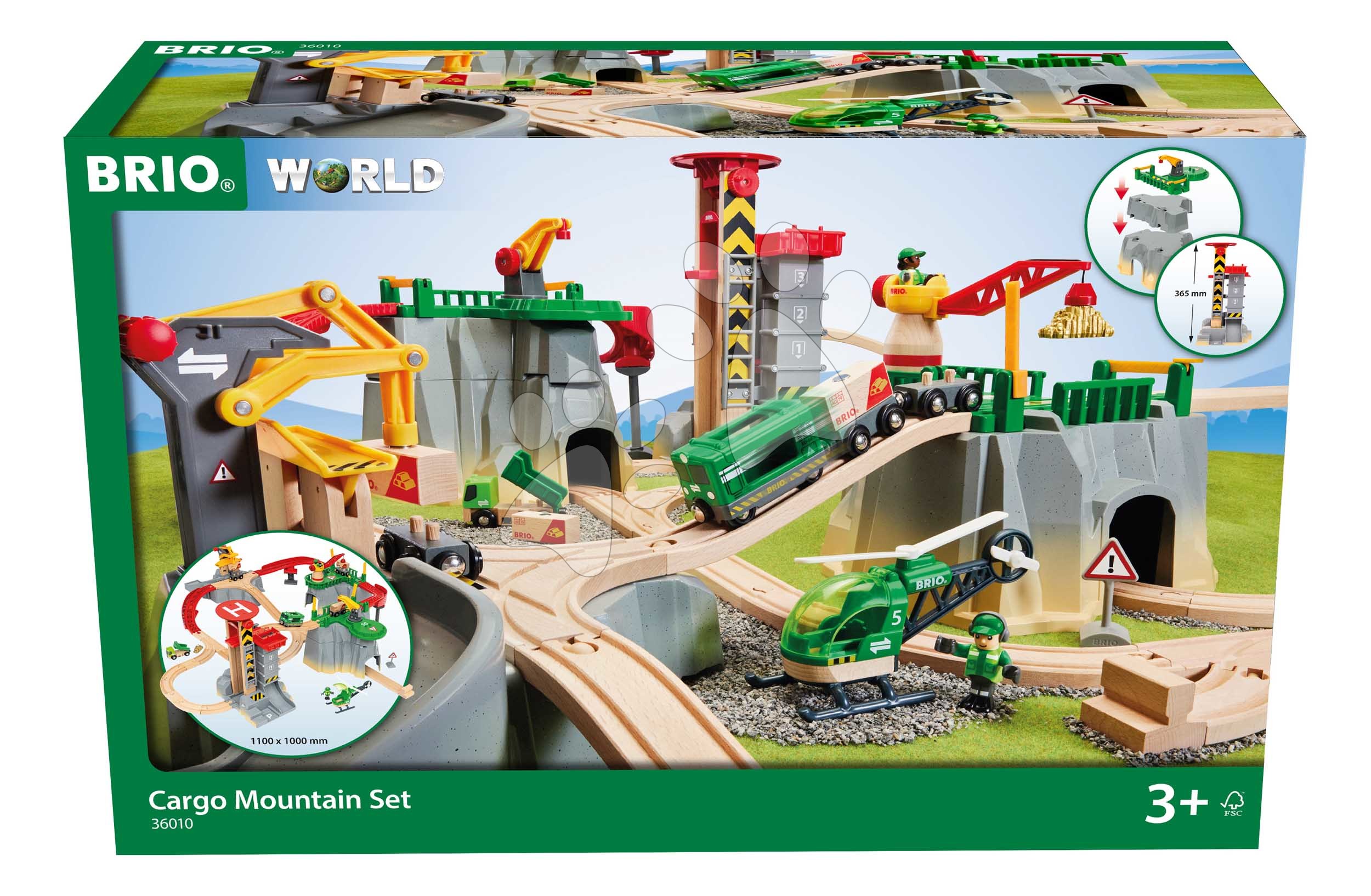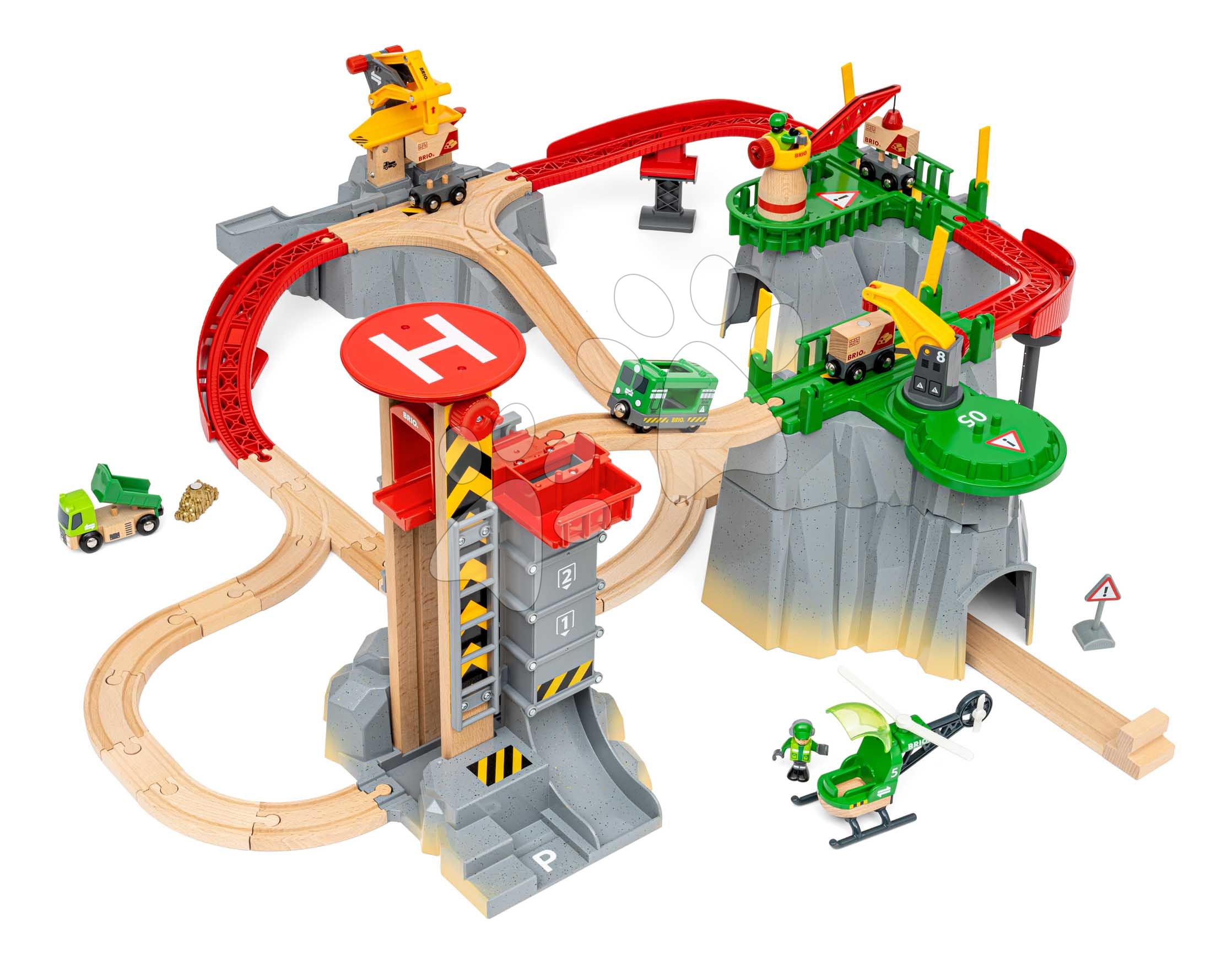 Drevená vláčikodráha s magnetickým žeriavom v horách Cargo Mountain Set BRIO 49 dielov s nákladným výťahom vláčikom a helikoptéra s autíčkom a 2 figúrkami od 3 rokov BRIO0103