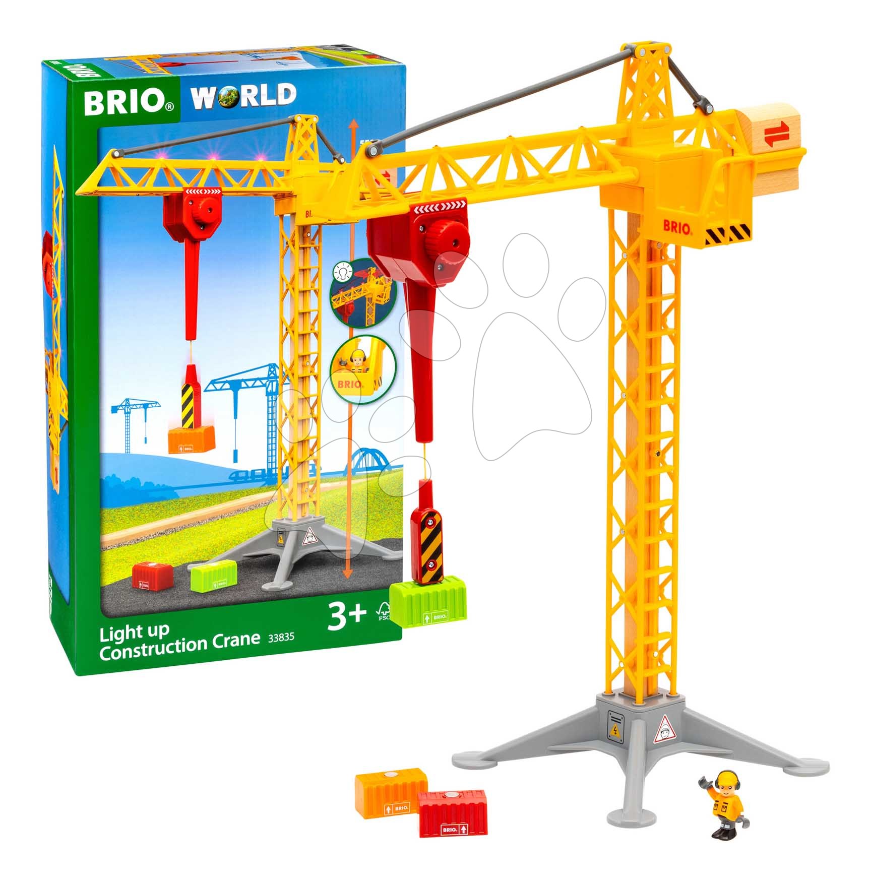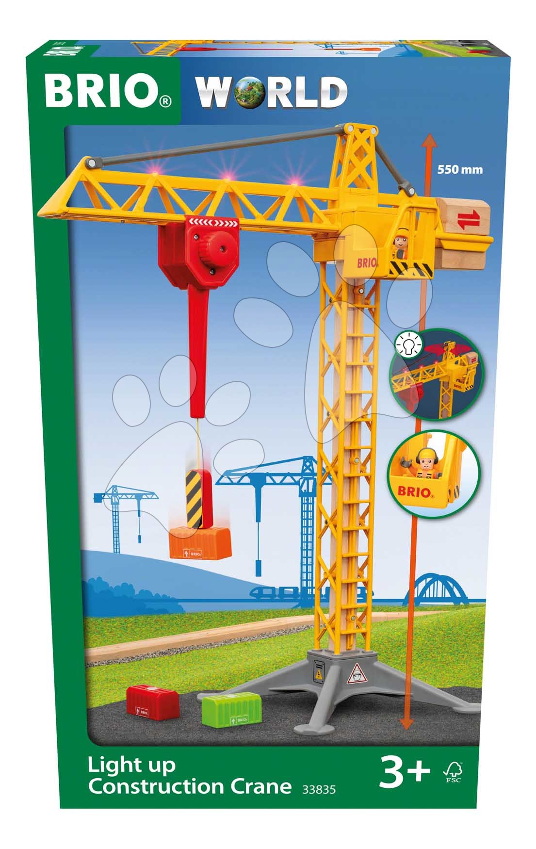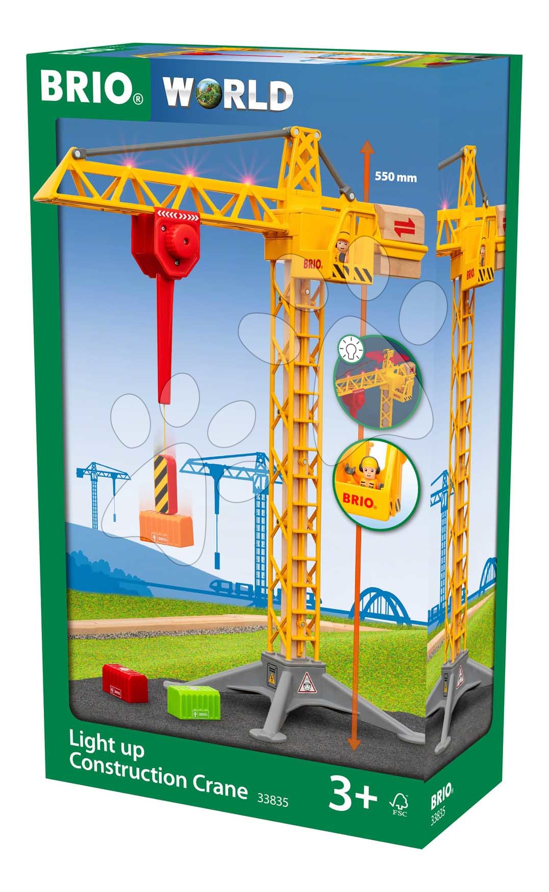 Drevený stavebný žeriav so svetlom Light Up Construction Crane BRIO 360° otočné rameno s magnetom a kontajnermi 5 dielov od 3 rokov BRIO8355