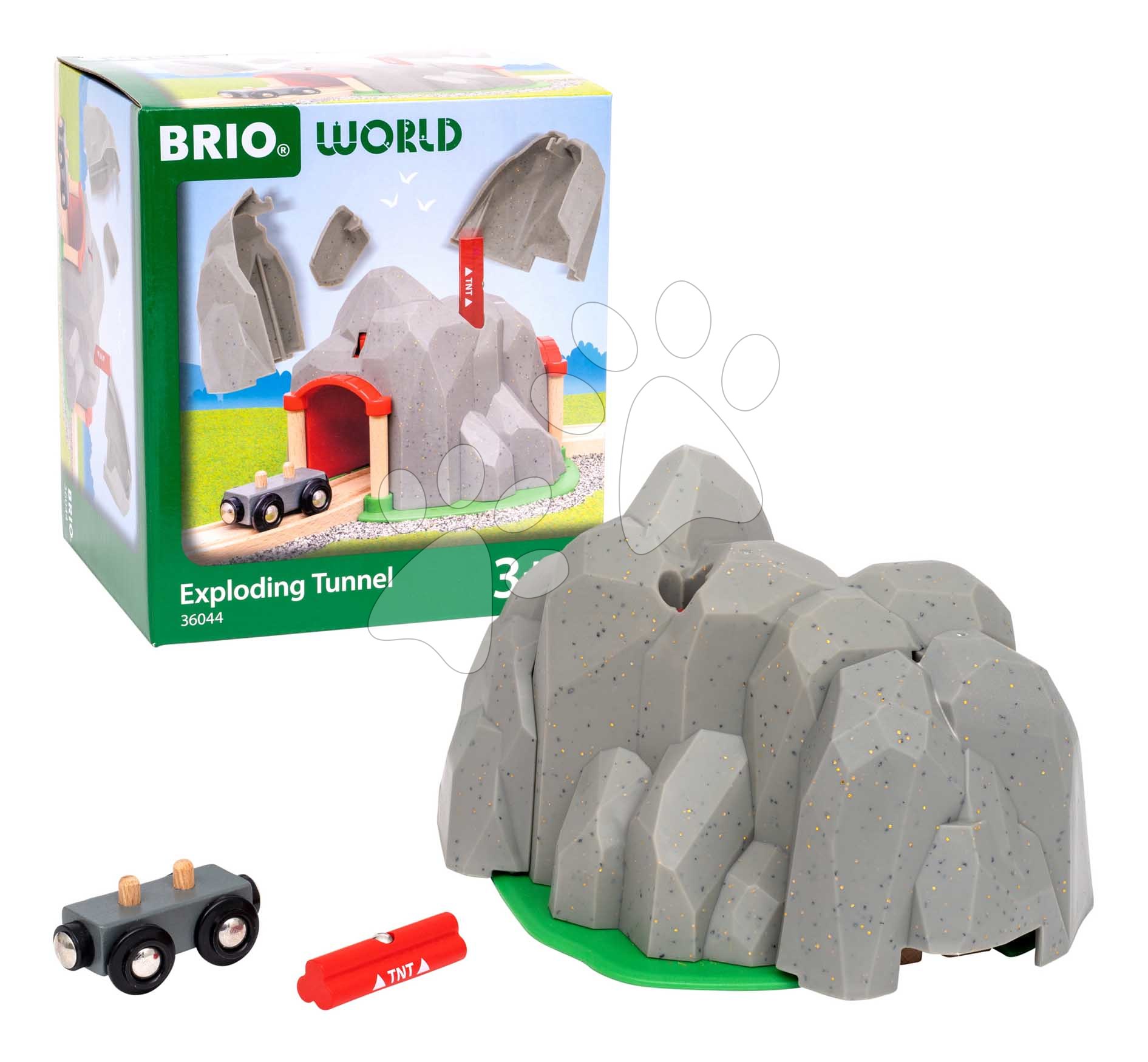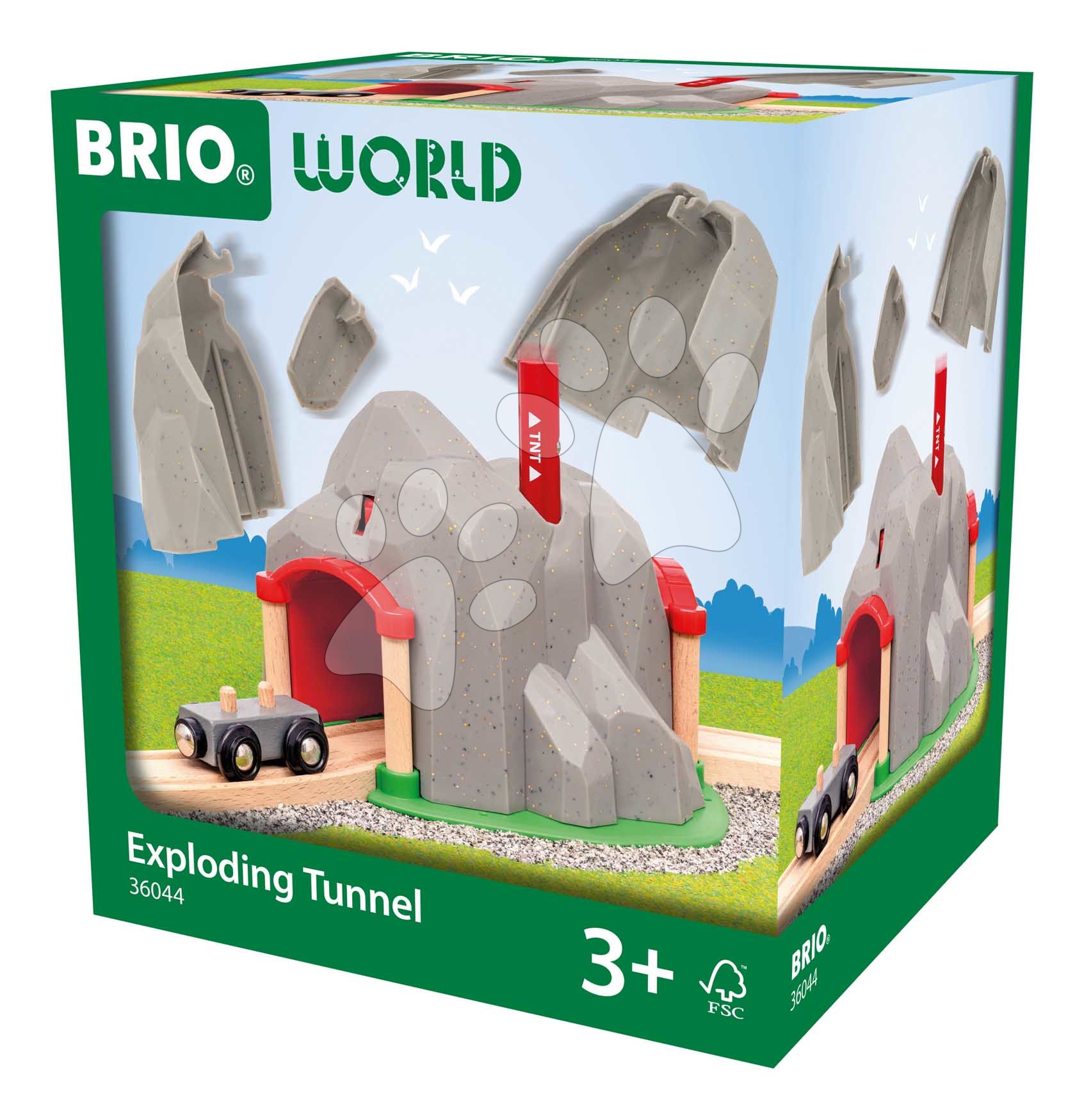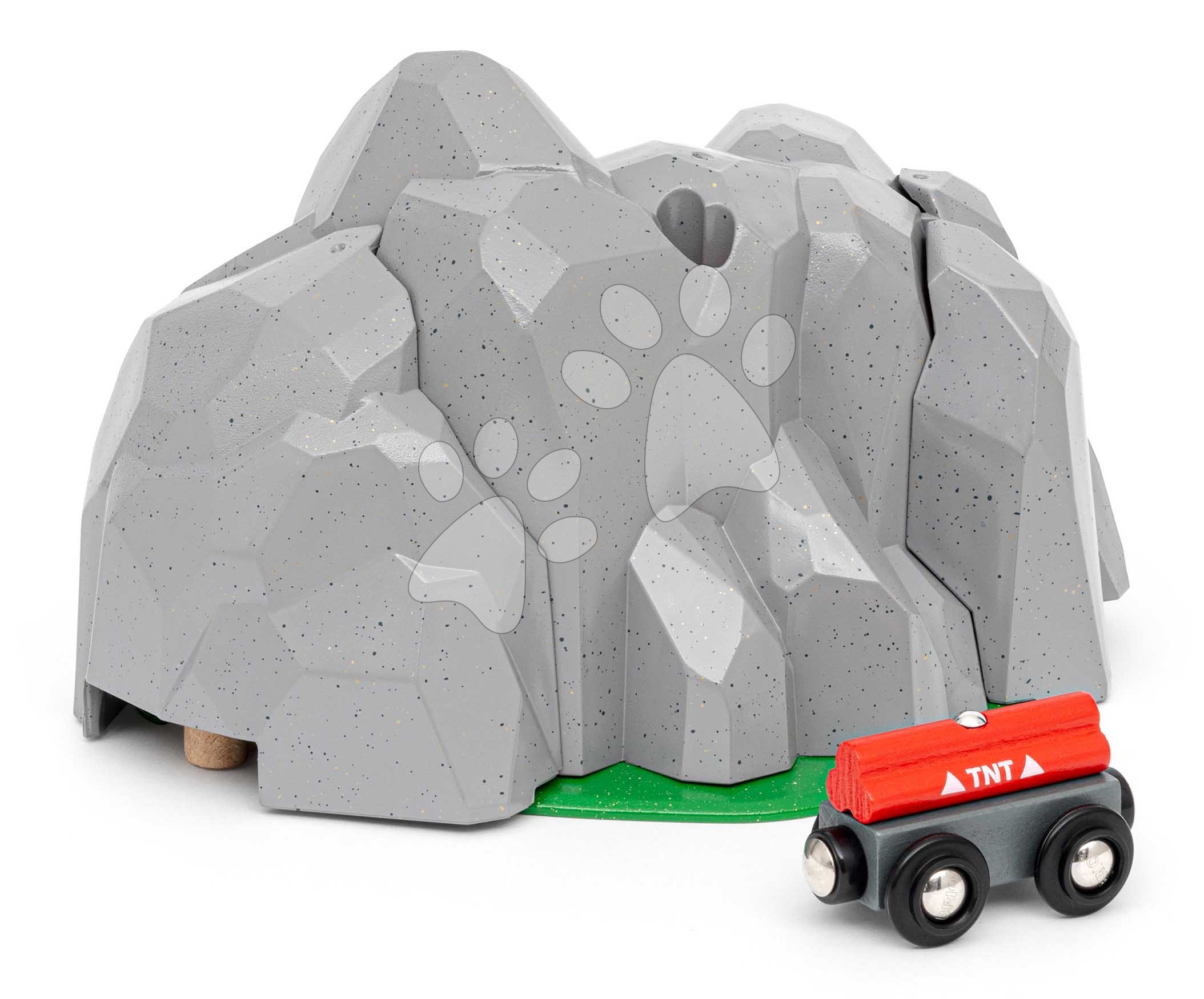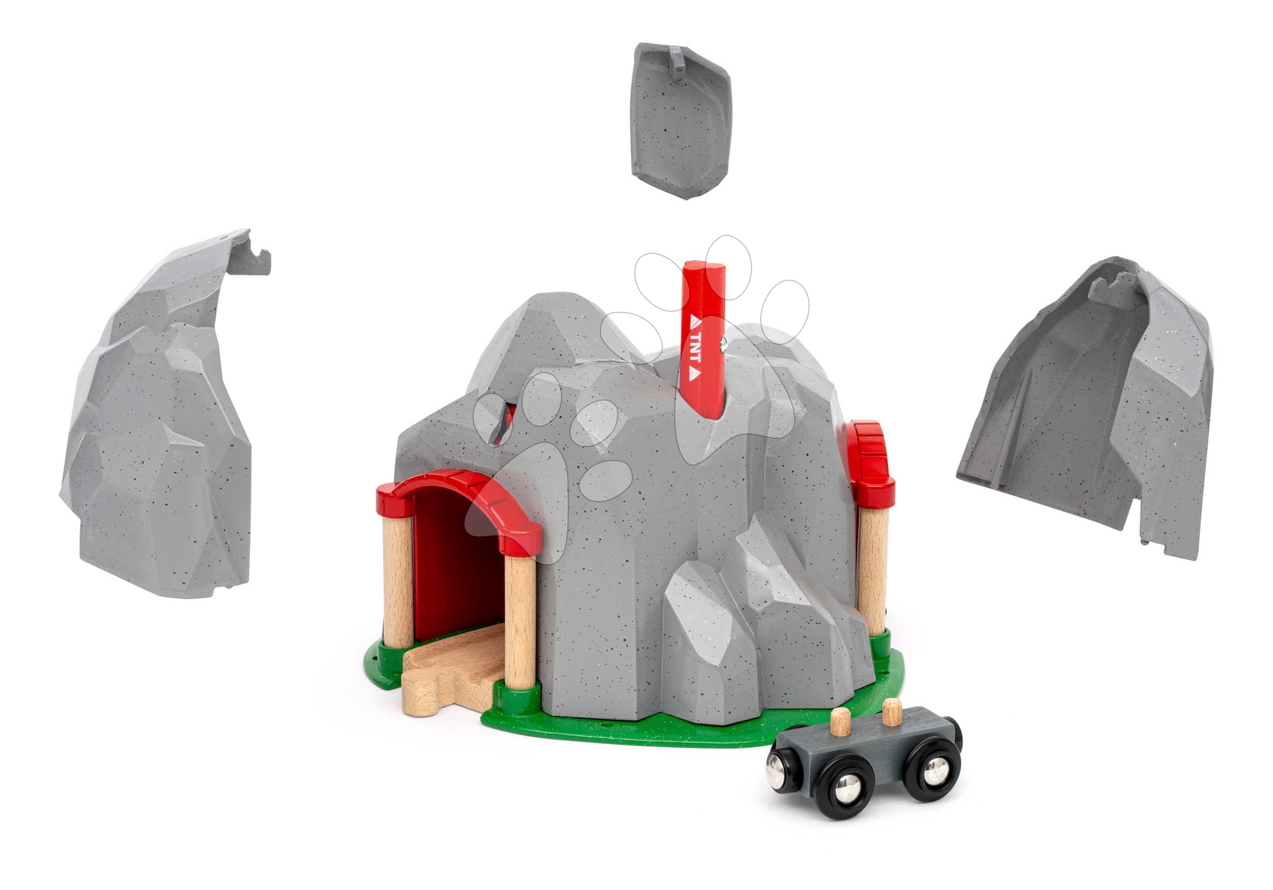 Drevený tunel s funkciou explózie Tunnel BRIO so skrytou koľajnicou a vagónom od 3 rokov BRIO0448