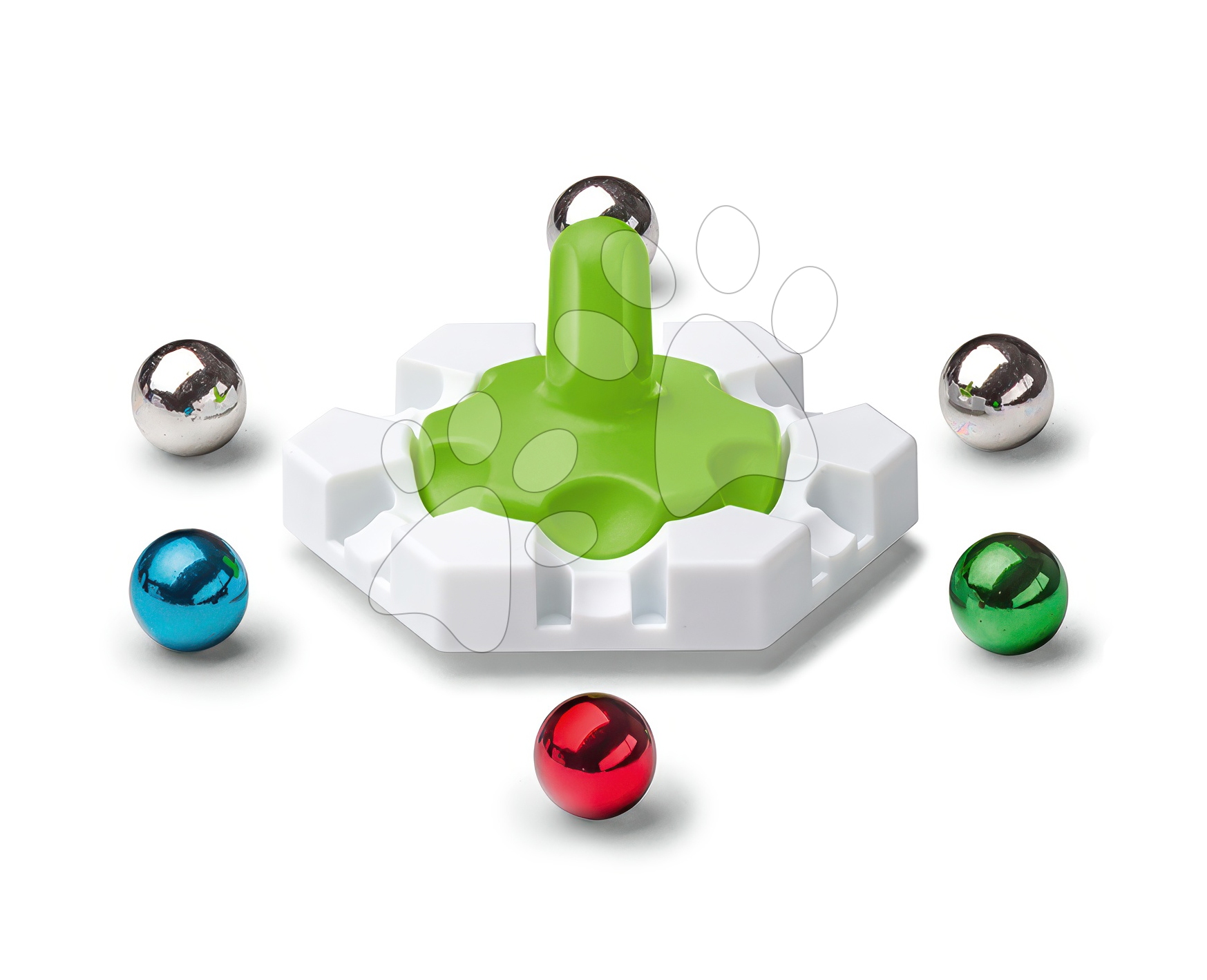 Erweiterung für Kugelbahnen Zentrifuge Kugeln & Spinner-Erweiterung stellt ein kompatibles Zubehör zu den Grundstartersets der Kugelbahnen GraviTrax und GraviTrax PRO dar. Der Baustein Zentrifuge ermöglicht es kleinen Konstrukteuren, durch einfaches Drehen der Zentrifuge gleichzeitig bis zu 6 Kugeln in verschiedene Richtungen auf der Bahn frei zu geben. Die Erweiterung Zentrifuge ist aus hochwertigen Kunststoffen gefertigt und begeistert Erwachsene sowie Kinder ab 8 Jahren. Im Lieferumfang enthalten sind der Baustein Zentrifuge, eine Anleitung und 6 Kugeln (3 farbige und 3 klassische).