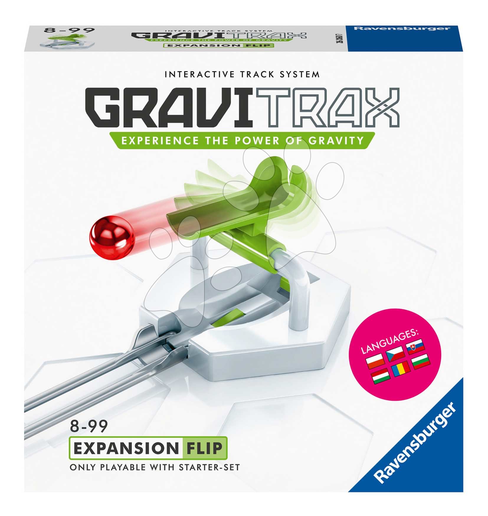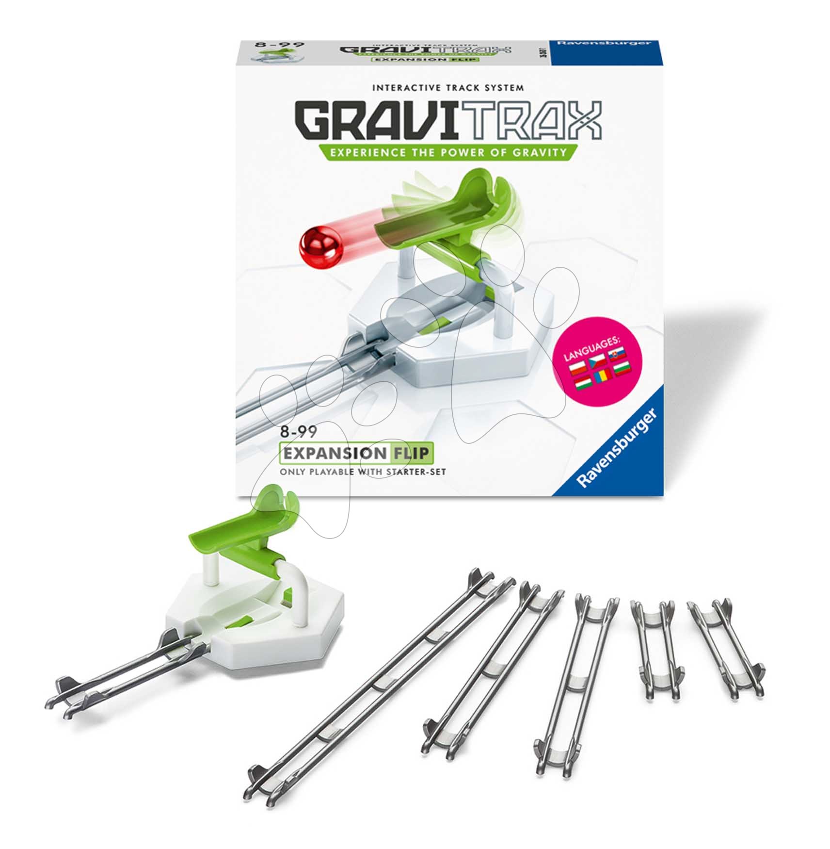 Erweiterung für Kugelbahnen Flip Extension ist ein kompatibles Zubehör für die Grundstartsets der Kugelbahnen GraviTrax und GraviTrax PRO. Das Bauelement Flip gibt kleinen Konstrukteuren die Möglichkeit, die Kugel eine Ebene höher zu befördern und sie in die entgegengesetzte Richtung zu schleudern. Die Flip-Erweiterung ist aus hochwertigem Kunststoff gefertigt und begeistert Erwachsene sowie Kinder ab 8 Jahren. Das 7-teilige Set enthält das Bauelement Flip (Drehung), eine Anleitung, eine lange Kunststoffbahn, 2 mittlere Kunststoffbahnen und 3 kurze Bahnen.