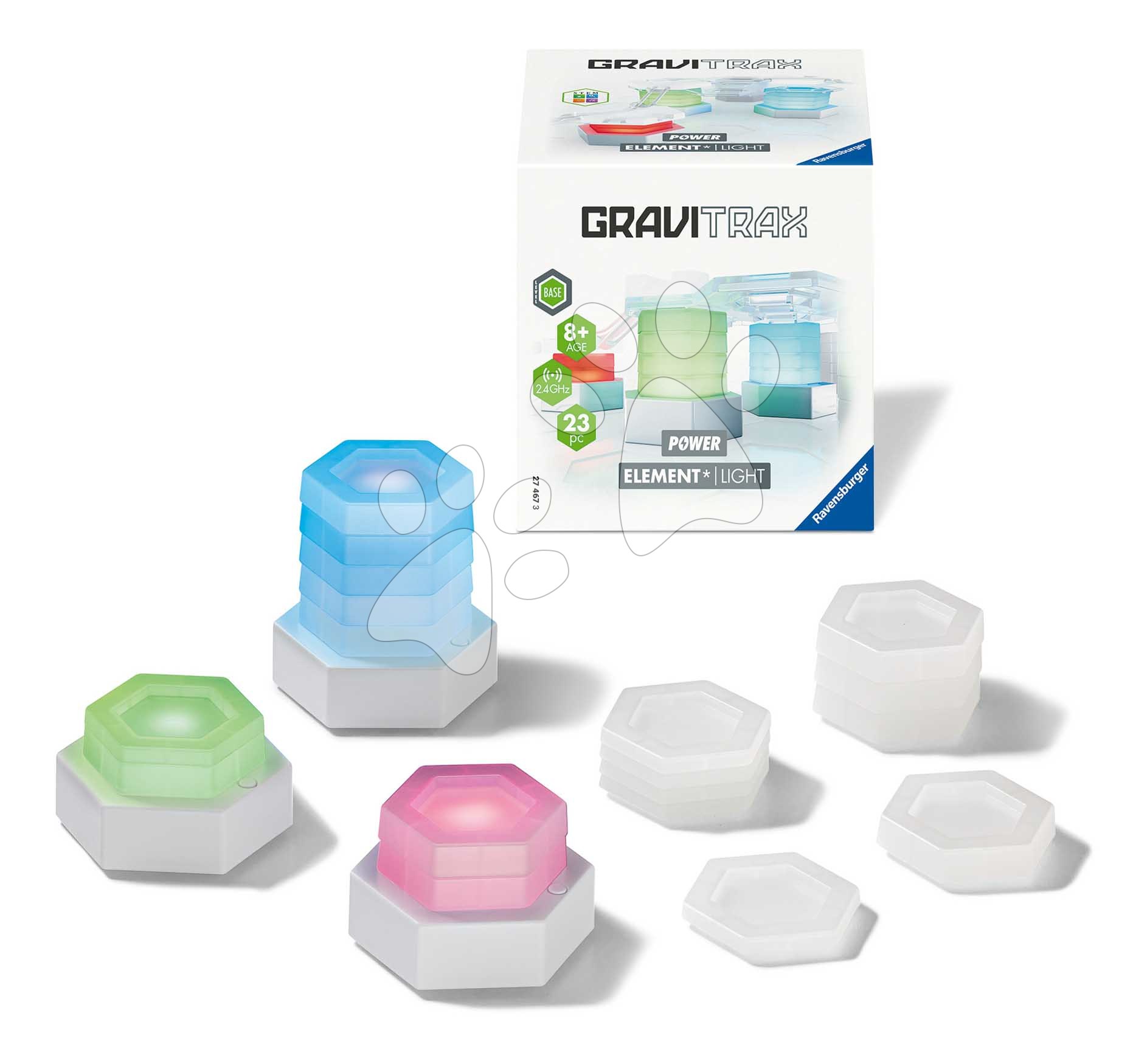 Die elektronische Erweiterung Light Power Lichtsäulen ist ein kompatibles Zubehör zu den GraviTrax- und GraviTrax PRO-Startersets. Das elektronische Lichtelement Licht ist ein actionreiches Modul, das Kindern ein völlig neues Spielerlebnis bietet. Das Set enthält 3 Lichtsäulen, die aus transparenten Bauteilen bestehen und einfach zusammengesteckt werden. Durch Drücken der Taste kann die Lichtfarbe gewechselt werden. Das 22-teilige Set enthält eine Anleitung, 3 Sockel und 18 transparente Bauteile. Jeder Sockel wird mit 3 AAA-Batterien betrieben (nicht im Lieferumfang enthalten).