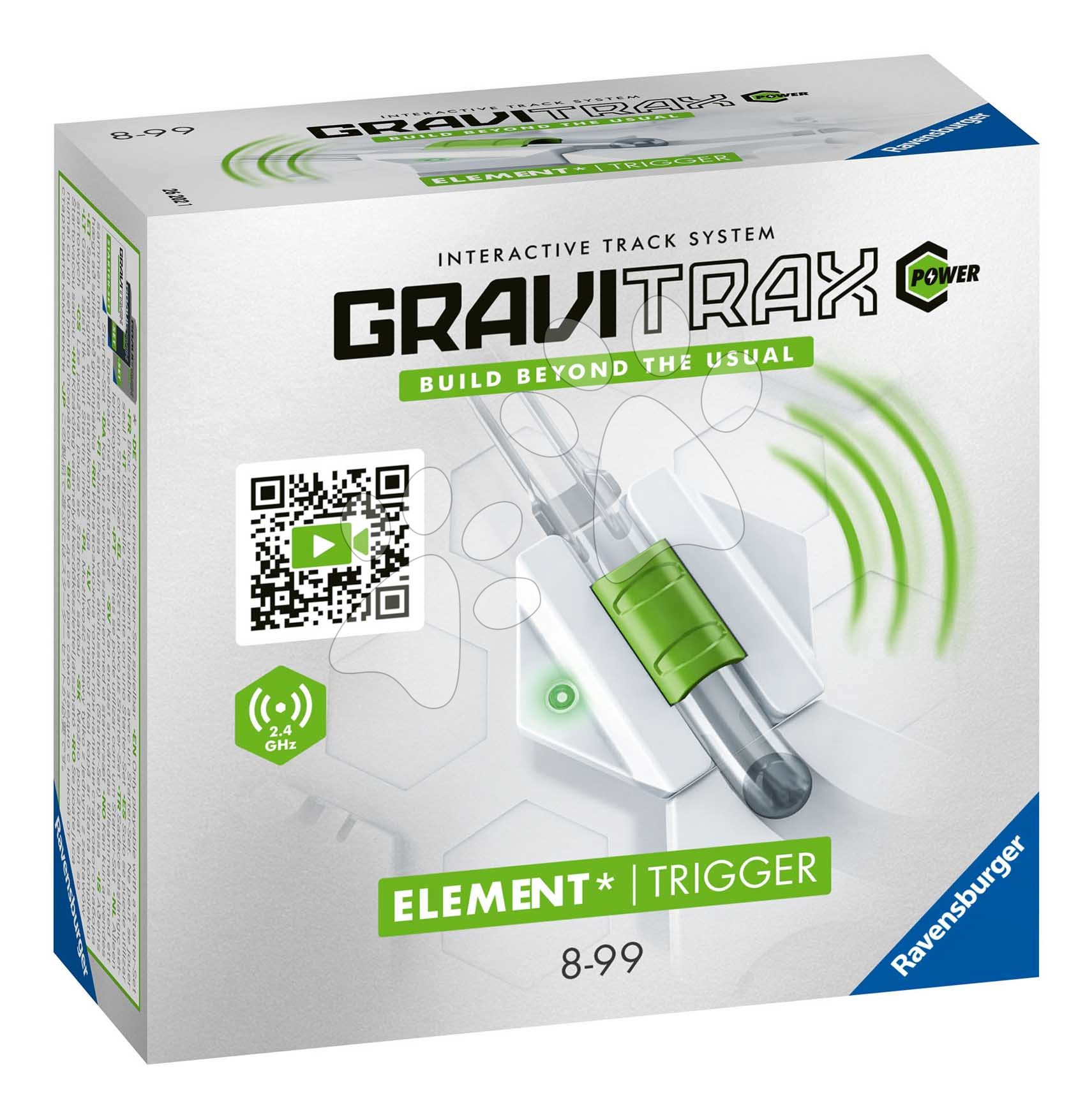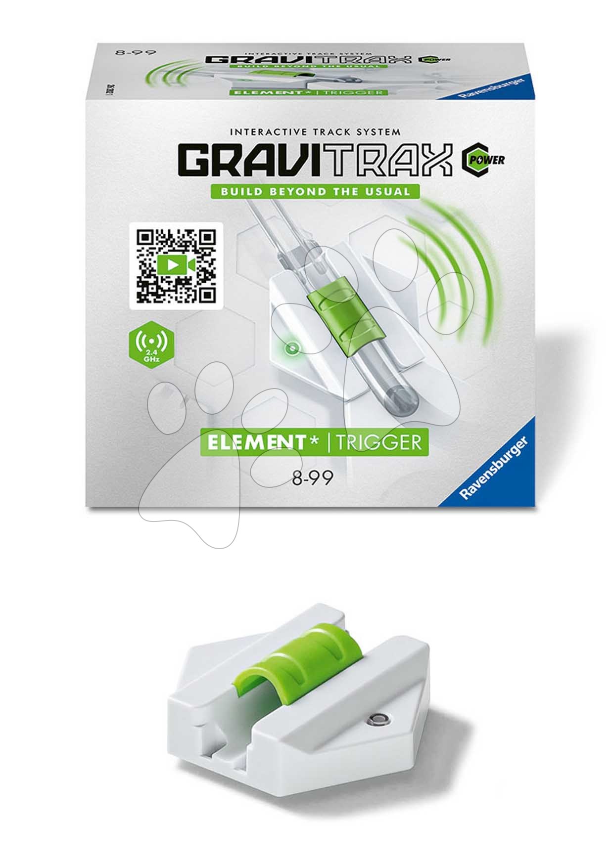 Die elektronische Erweiterung Trigger Power ist ein kompatibles Zubehör zu den GraviTrax- und GraviTrax PRO-Startersets. Das elektronische Bauelement Trigger ist ein Aktionsmodul, das Signale an Empfänger auf einem bestimmten Kanal senden kann. Es ist zur Verwendung mit anderen elektronischen GraviTrax Power-Elementen vorgesehen und kann nicht eigenständig verwendet werden. Das Element wird mit einer AAA-Batterie betrieben, die nicht im Lieferumfang enthalten ist.
