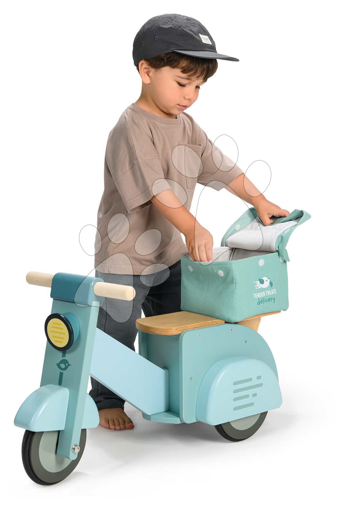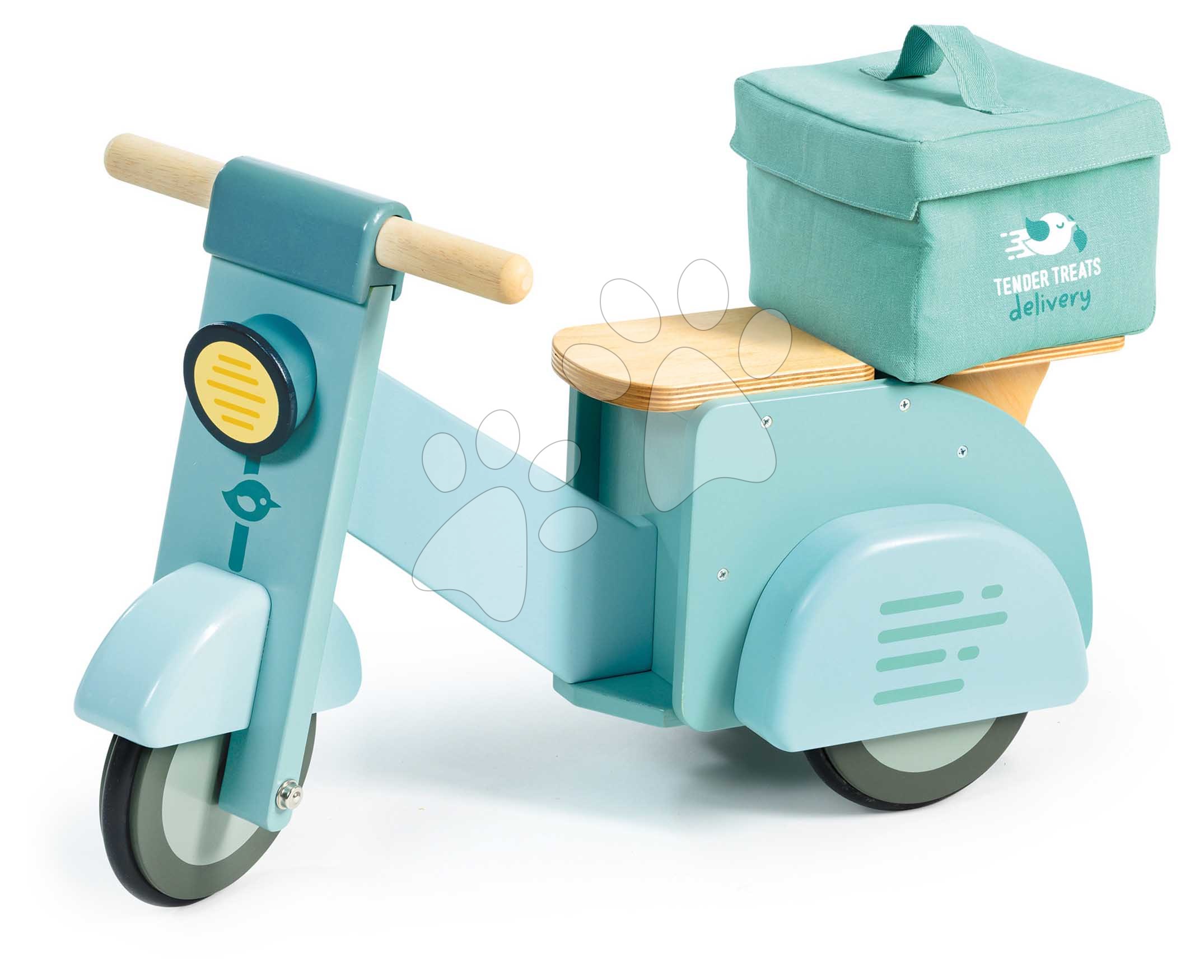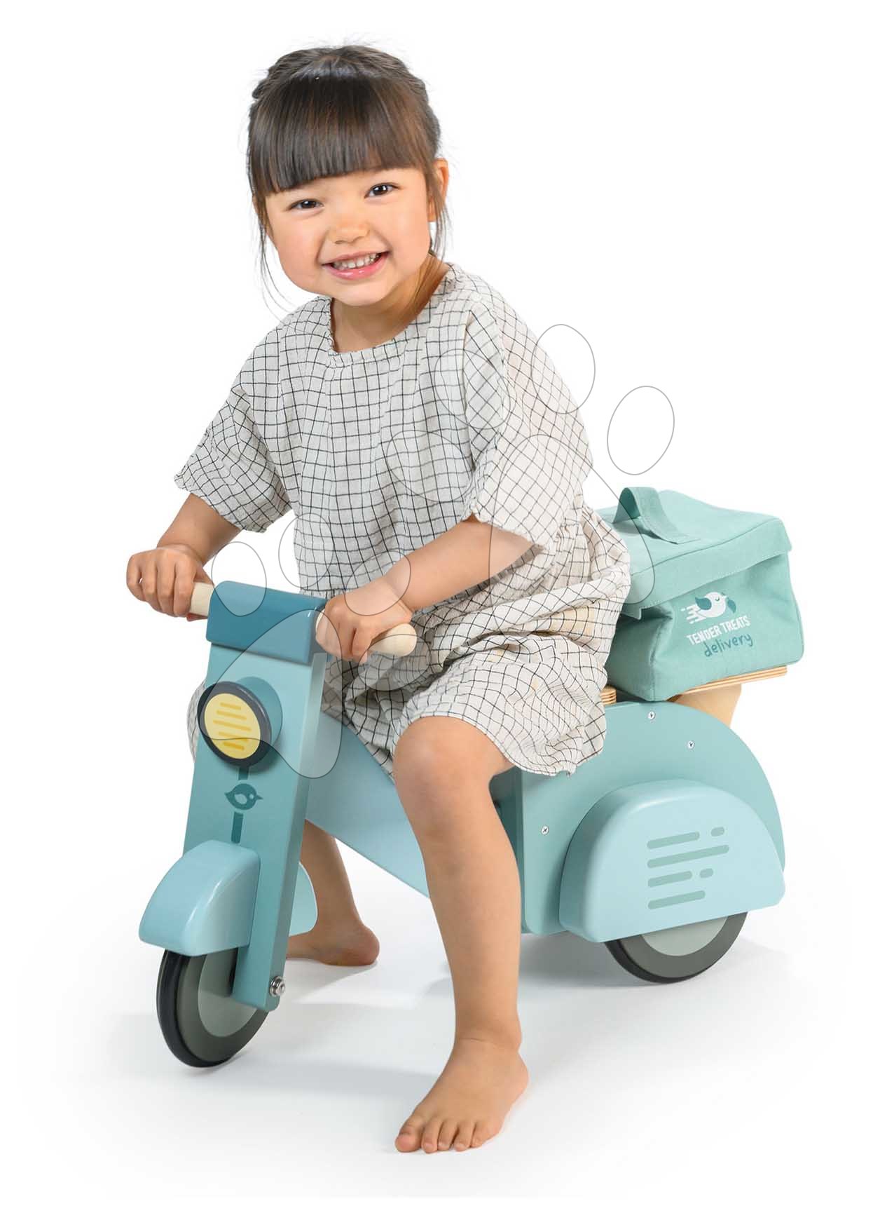 Das hölzerne Laufrad Delivery Scooter ist ein zeitloses Spielzeug, das sich ideal für Kinder ab 24 Monaten eignet. Das hochwertige Laufrad im blauen Design wurde von den talentierten Designern der Marke Tender Leaf direkt in Großbritannien entworfen. Besonders Jungen werden begeistert sein von der Leinentasche mit Essensangebot auf der Rückseite des Rollers, mit der sie spielerisch in die Rolle eines Essenskuriers schlüpfen können. Das Laufrad überzeugt durch seine stabile Holzkonstruktion, die viele Jahre hält und auch der nächsten Generation Freude bereiten wird. Die funktionale Vorderradlenkung ermöglicht Kindern ein leichtes Manövrieren und Kurvenfahren. Die Holzräder mit Gummibeschichtung sorgen für ein angenehmes Fahrgefühl und schützen gleichzeitig den Boden vor Kratzern.