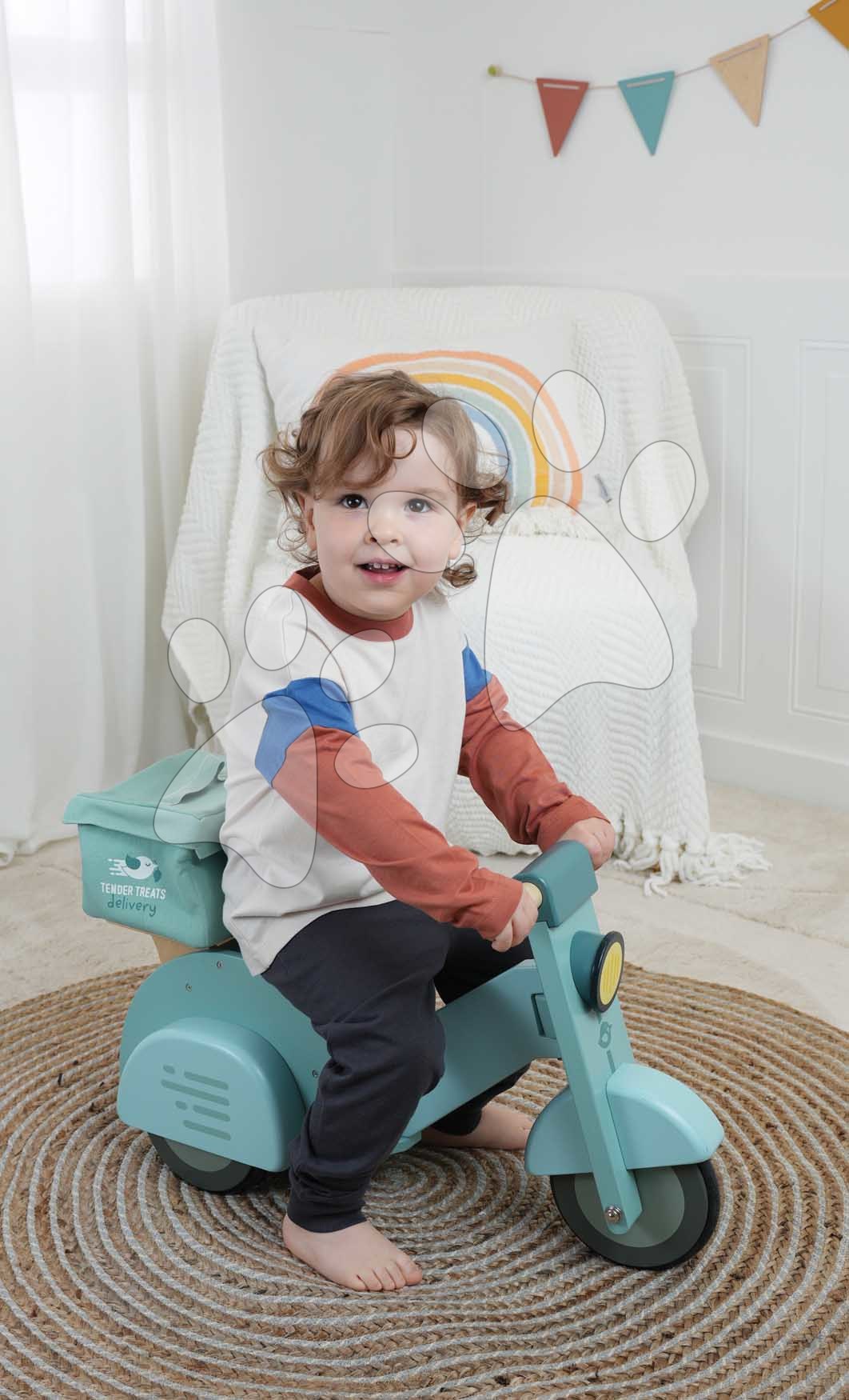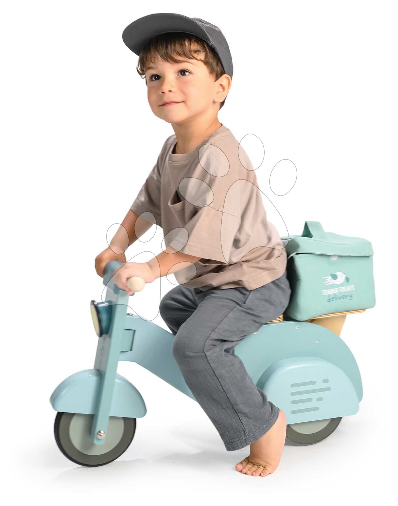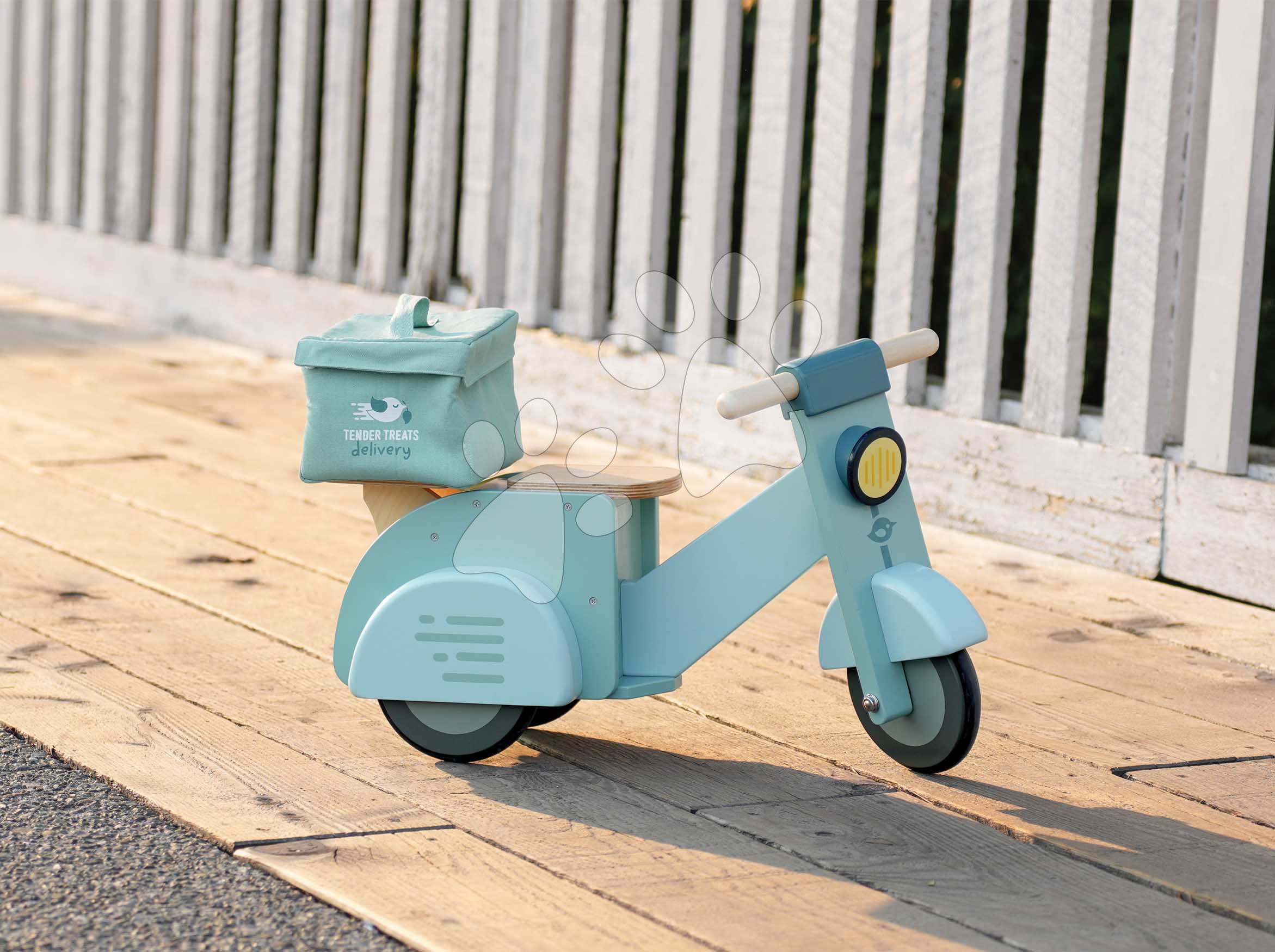 Das hölzerne Laufrad Delivery Scooter ist ein zeitloses Spielzeug, das sich ideal für Kinder ab 24 Monaten eignet. Das hochwertige Laufrad im blauen Design wurde von den talentierten Designern der Marke Tender Leaf direkt in Großbritannien entworfen. Besonders Jungen werden begeistert sein von der Leinentasche mit Essensangebot auf der Rückseite des Rollers, mit der sie spielerisch in die Rolle eines Essenskuriers schlüpfen können. Das Laufrad überzeugt durch seine stabile Holzkonstruktion, die viele Jahre hält und auch der nächsten Generation Freude bereiten wird. Die funktionale Vorderradlenkung ermöglicht Kindern ein leichtes Manövrieren und Kurvenfahren. Die Holzräder mit Gummibeschichtung sorgen für ein angenehmes Fahrgefühl und schützen gleichzeitig den Boden vor Kratzern.