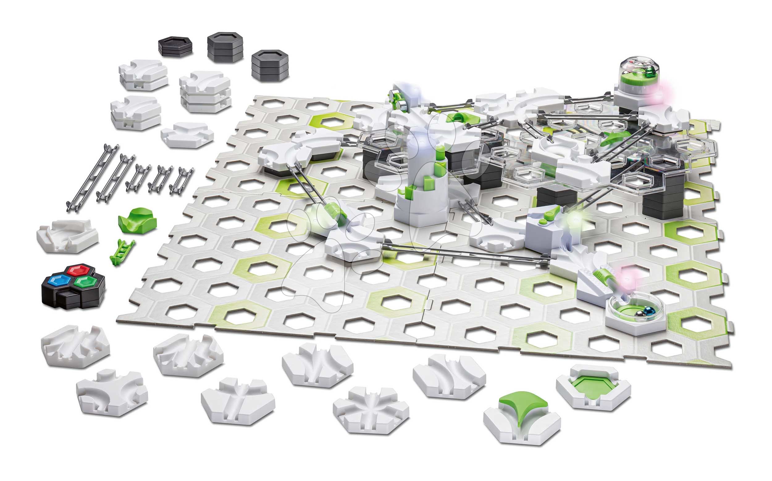Das elektronische XXL Start-Set Power aus der GraviTrax-Kollektion ist der perfekte Einstieg für alle kleinen und großen Ingenieure ab 8 Jahren. Mit dieser innovativen Kugelbahn erleben Kinder und Erwachsene grenzenlosen Bauspaß und unzählige Möglichkeiten, eigene Bahnkreationen zu entwerfen und zum Leben zu erwecken. Zum Set gehören mehrere elektronische Elemente, die das Spiel noch spannender machen: ein Trigger, der beim Durchlaufen einer Kugel ein Signal für die nächste Aktion auslöst, ein Starter und Ziel-Trigger zum Freisetzen der nächsten Kugel, ein Aufzug mit Stufen, der die Kugeln bis zu sieben Ebenen höher befördert, eine Weiche zur Richtungsänderung, ein Hebel, der die Kugel beschleunigt, und ein Controller mit drei Tasten, über den sich Signale an alle elektronischen Module senden und die Reihenfolge der Aktionen gezielt steuern lassen.