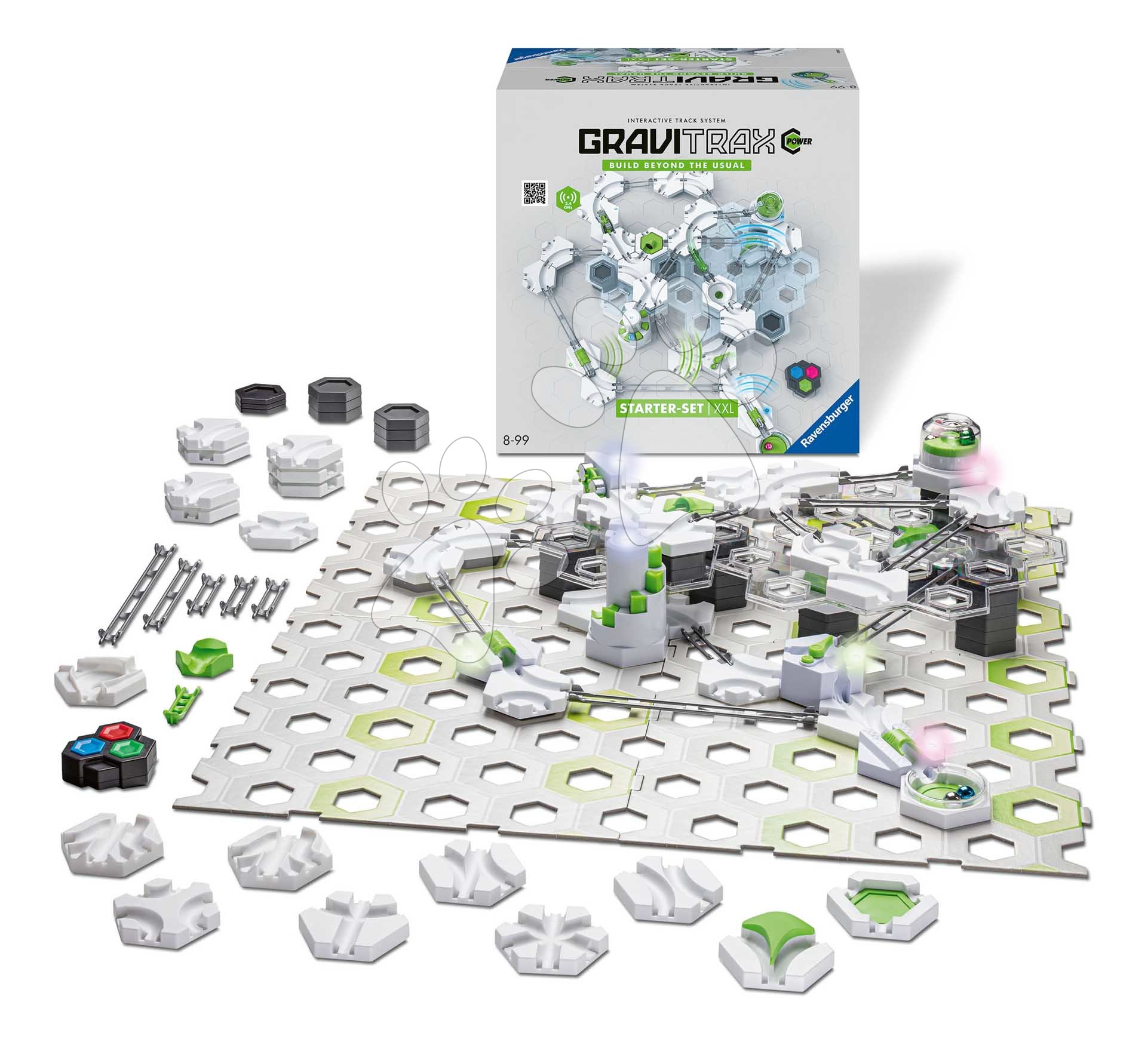 Das umfangreiche Set umfasst 142 Bauteile, darunter zahlreiche Schienen, Kurven, Höhensteine, sieben Metallkugeln sowie eine leicht verständliche Anleitung. Für die Nutzung aller elektronischen Komponenten werden 11 AAA-Batterien benötigt (nicht im Lieferumfang enthalten). Das Power-System lässt sich jederzeit mit weiteren GraviTrax-Erweiterungen kombinieren – so wächst die Bahn mit jeder neuen Idee und der Schwierigkeitsgrad kann stetig gesteigert werden. Beim Planen und Bauen trainieren Kinder spielerisch logisches Denken, räumliche Vorstellungskraft, Geduld und Kreativität. Die GraviTrax Power Bahn begeistert nicht nur Kinder, sondern auch Erwachsene und bietet unendliche Möglichkeiten, komplexe Konstruktionen mit echten physikalischen Effekten zu gestalten.