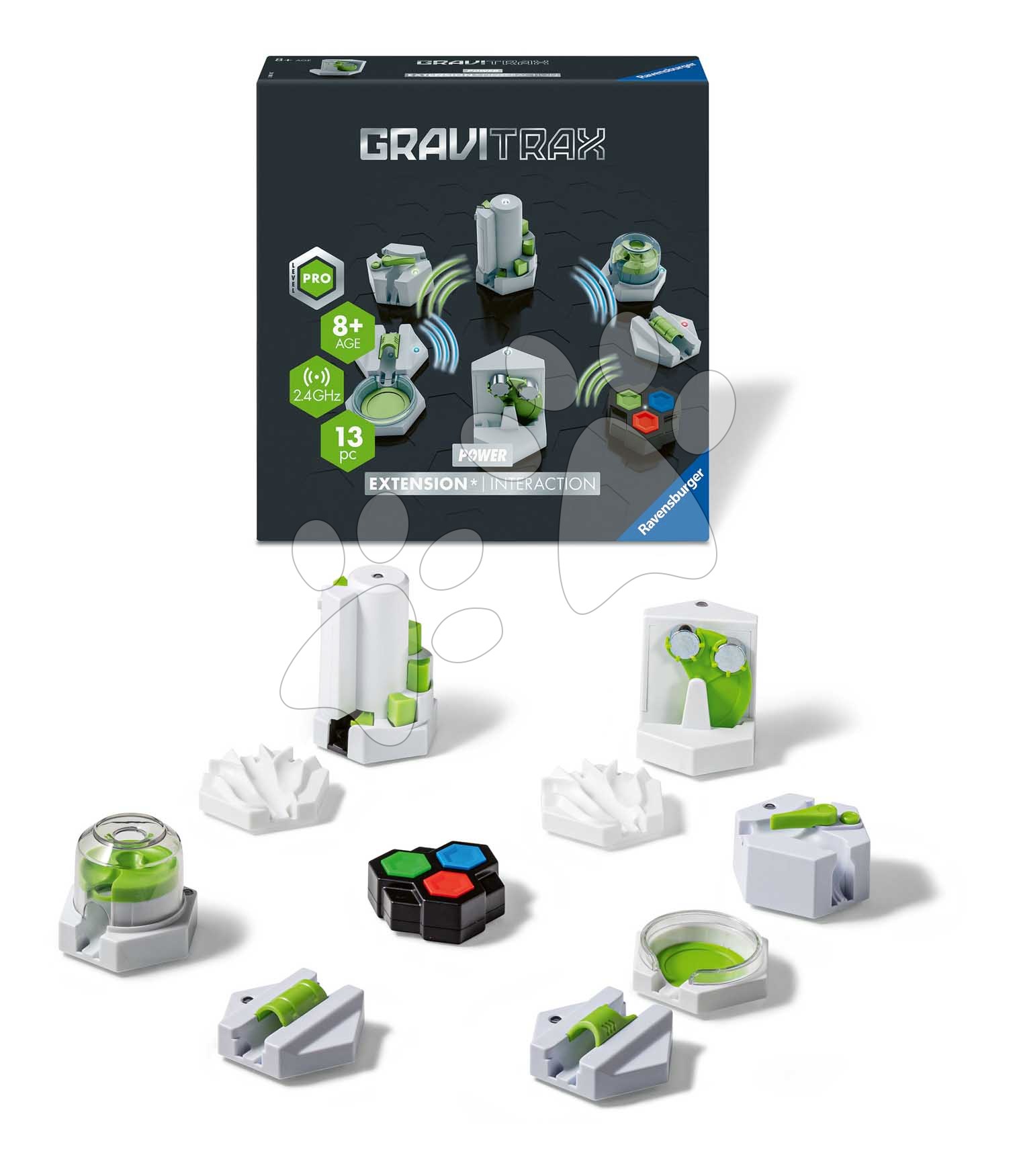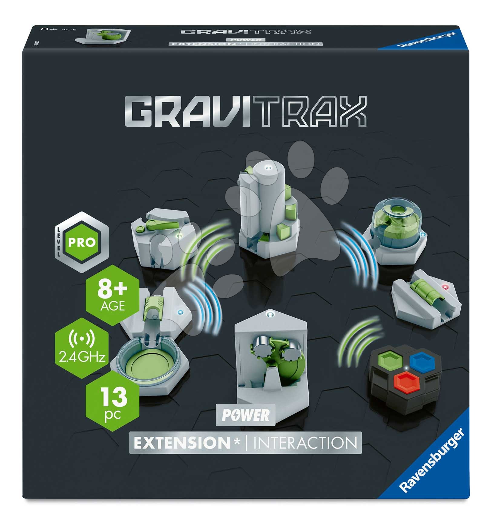 Das interaktive Erweiterungsset Power Interaction ist ein kompatibles Zubehör zu den GraviTrax- und GraviTrax PRO-Startersets. Die elektronischen Bauelemente eröffnen kleinen Ingenieuren neue Möglichkeiten beim Bau ihrer Kugelbahnen – sie kommunizieren miteinander, und mit Hilfe des Controllers kann das Kind die Reihenfolge der Aktionen auf der Bahn bestimmen.Die interaktiven Module können nicht eigenständig verwendet werden, sondern sind eine Erweiterung zu den Basissets GraviTrax und GraviTrax PRO (nicht kompatibel mit den Junior-Bahnen). Das Set enthält insgesamt 13 Zubehörteile, darunter 7 interaktive Bauelemente, 3 klassische Bauteile sowie eine Anleitung und ein Handbuch.