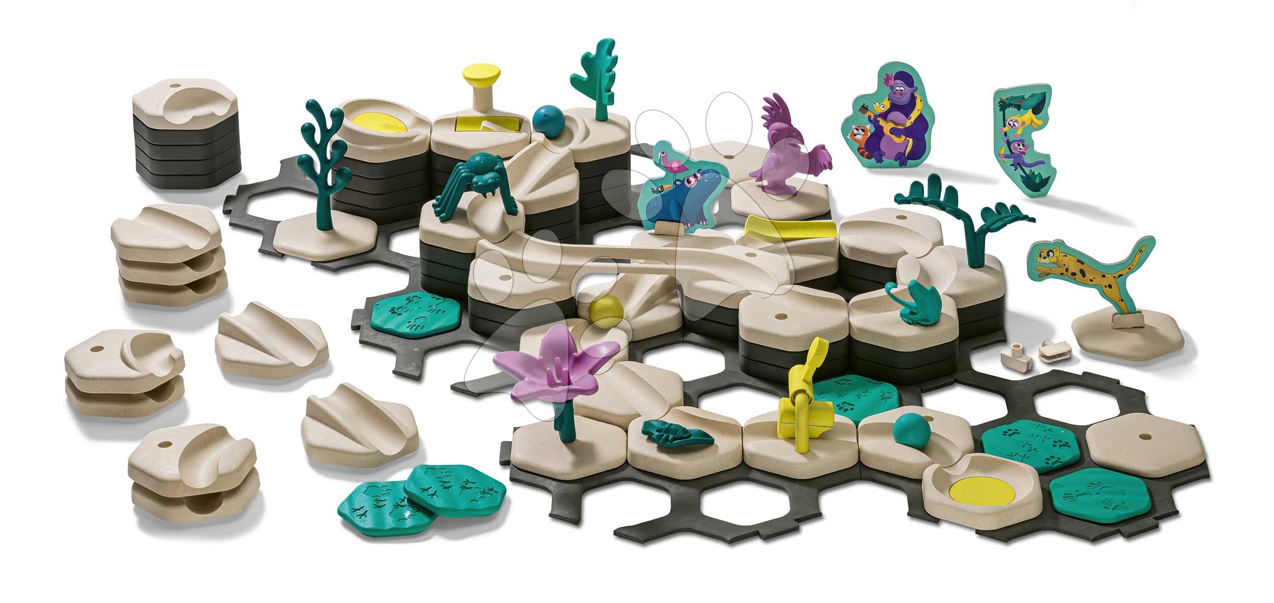 Die Kugelbahn Dschungel – Starterset Junior ist ein hervorragender erster Bausatz für Jungen und Mädchen ab 3 Jahren. Die Junior-Kugelbahn mit Dschungelmotiv ermöglicht es Kindern, ihre Fantasie und Kreativität beim Bau abwechslungsreicher Strecken voll auszuleben. Das Set enthält 100 Teile, mit denen Kinder ein interaktives Bahnsystem entwerfen und errichten können. Mit Hilfe der Kugeln testen sie die Durchgängigkeit der Bahn und integrieren Bauelemente mit niedlichen Tierfiguren aus hochwertigem Holz-Biokunststoff. Eine bebilderte Anleitung hilft ihnen, die Grundprinzipien des Bahnbaus schnell zu verstehen.