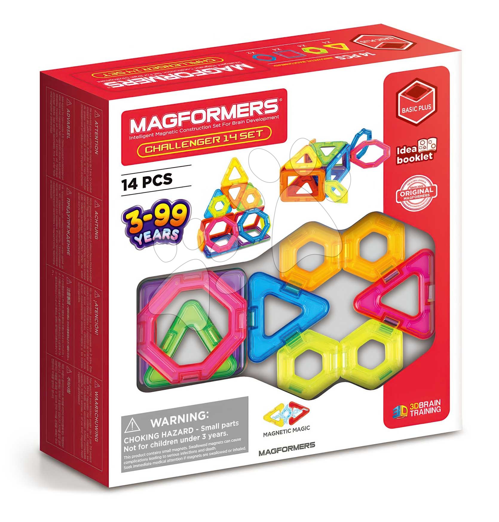 Magformers Extra Challenges „Challengers“ Magnet-Bausatz ist ein tolles Spielzeug für Jungen und Mädchen ab 3 Jahren. Der Bausatz enthält 14 farbige Bausteine in verschiedenen Formen mit starken Innenmagneten, die sich gegenseitig anziehen und schnell verbinden. Die Magnetbausteine sorgen für maximale Stabilität bei jeder Konstruktion. Dank dieser Stabilität können Kinder 2D- und 3D-Modelle bauen und tauchen voll in eine Welt der Fantasie und Vorstellungskraft ein. Beim kreativen Gestalten verbessern sie ihre Feinmotorik, ihr logisches Denken und entwickeln ihr räumliches Vorstellungsvermögen. Auf spielerische Weise lernen sie außerdem Farben zu erkennen und die Grundlagen der Geometrie.