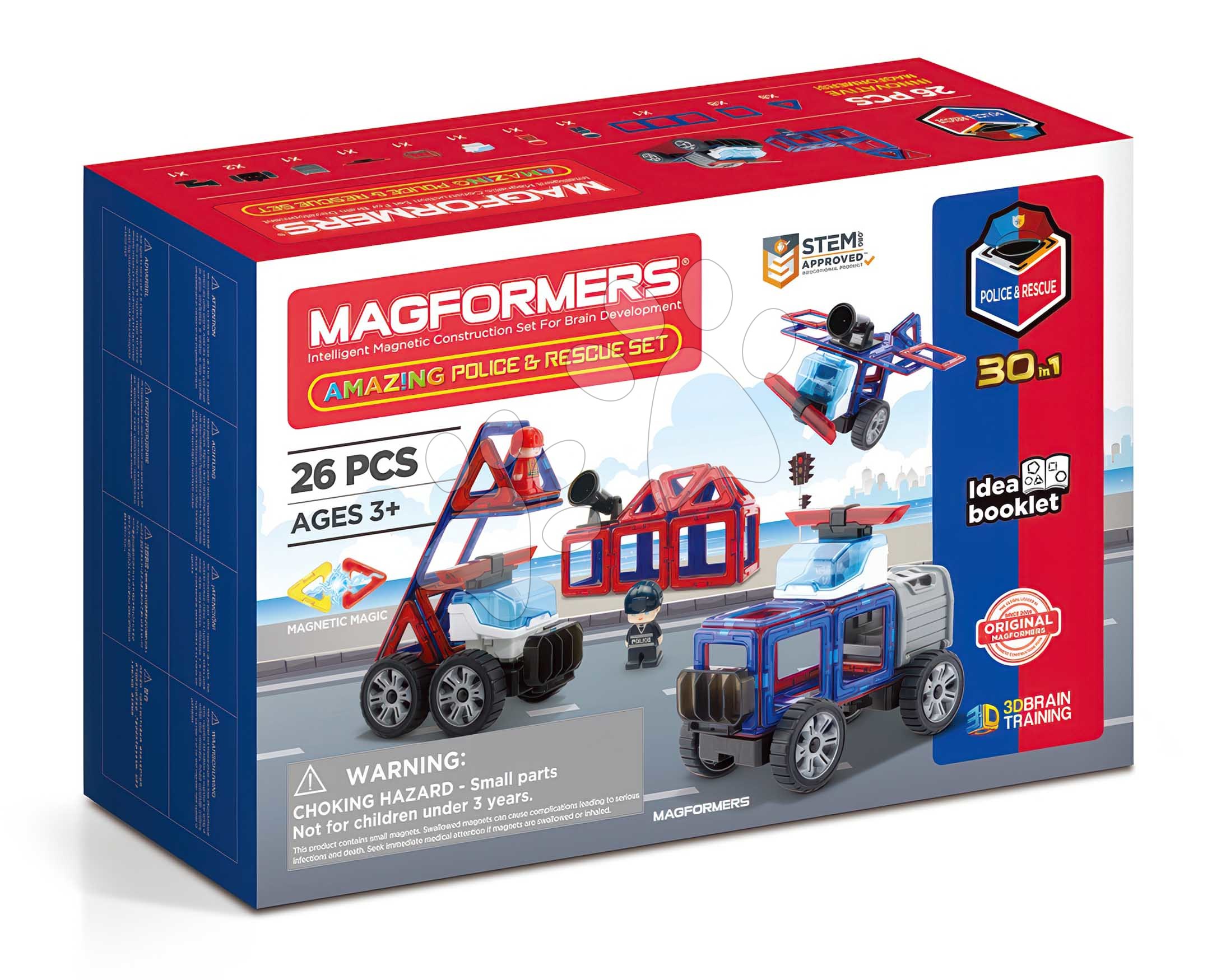 Magnetischer Baukasten Polizei und Rettungsdienste Magformers aus der Police & Rescue-Kollektion stellt einen erstklassigen Basiskasten für Jungen und Mädchen ab 3 Jahren dar. Der grundlegende 26-teilige Baukasten ist mit Teilen verschiedener Formen und starken Innenmagneten ausgestattet, die sich gegenseitig anziehen und schnell verbinden. Kinder lernen, Fahrzeuge der Rettungsdienste und Polizei zu bauen; mit hochwertigen Teilen können sie 2D- und 3D-Konstruktionen erstellen und tauchen voll in die Welt der Fantasie und Vorstellungskraft ein. Beim kreativen Gestalten verbessern sie ihre Feinmotorik, ihr logisches Denken und entwickeln ihr räumliches Vorstellungsvermögen. Spielerisch lernen sie gleichzeitig, Farben zu erkennen und erlernen Grundlagen der Geometrie.