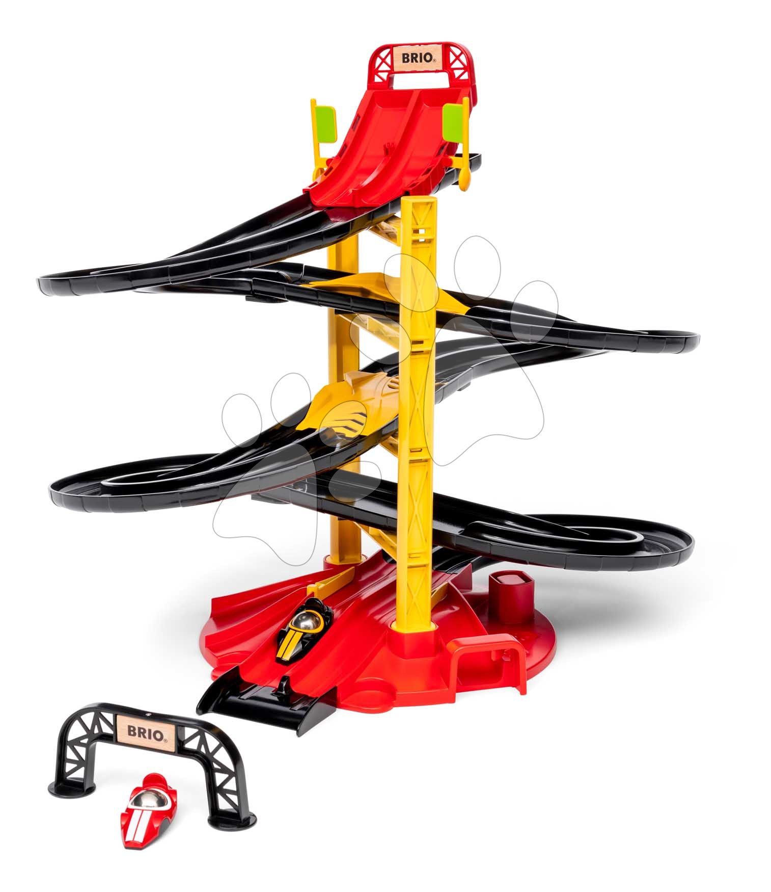 Pretekárska veža 3 poschodová Roll Racing Tower BRIO s 2 autíčkami a cieľom 19 dielov od 3 rokovxBRIO5500