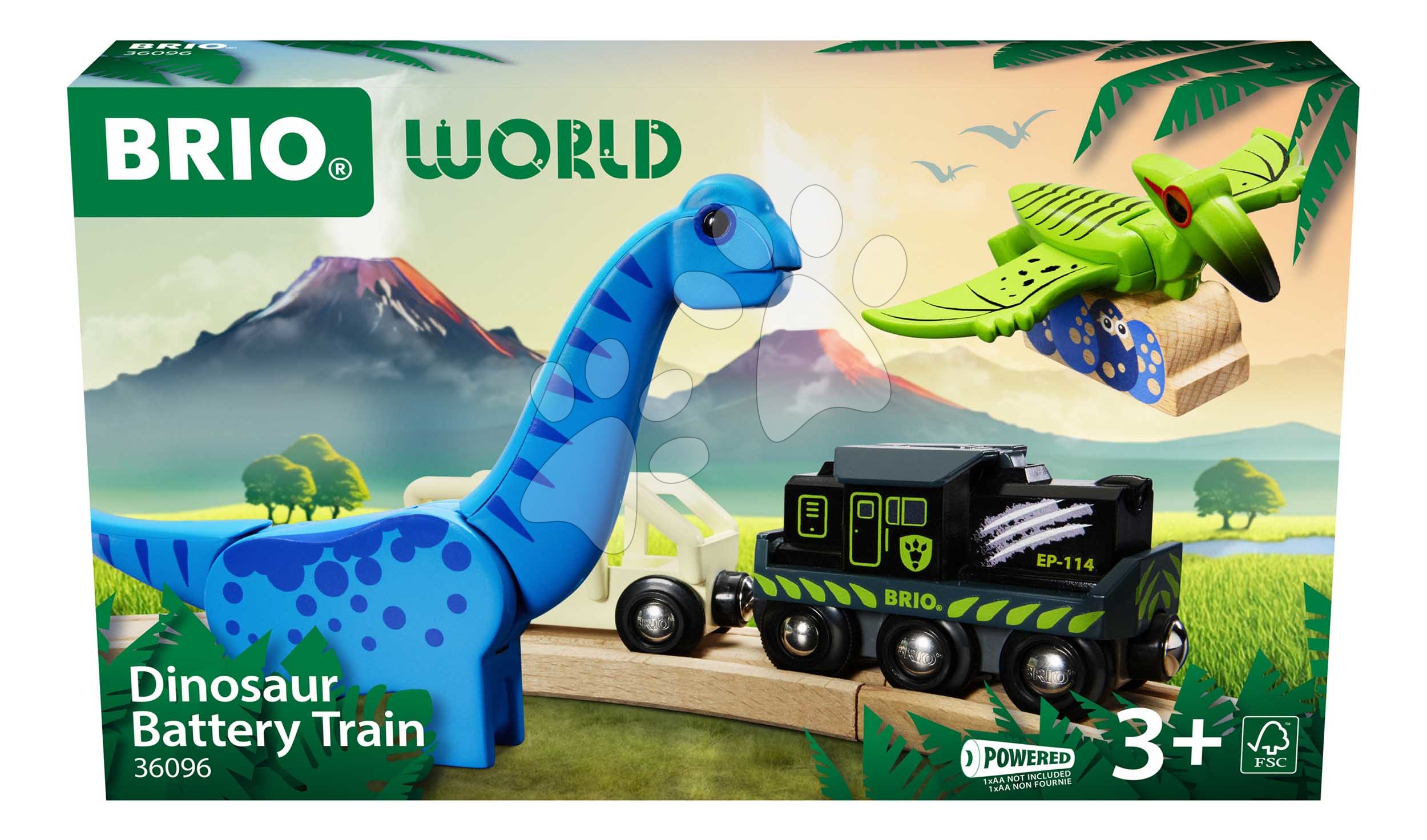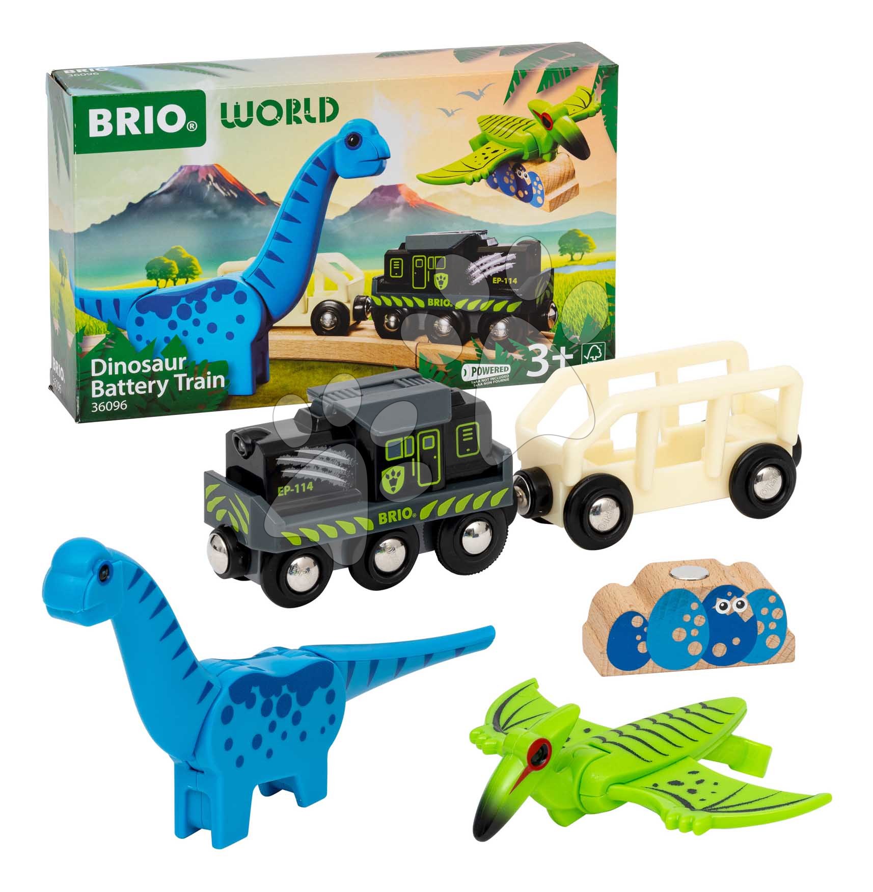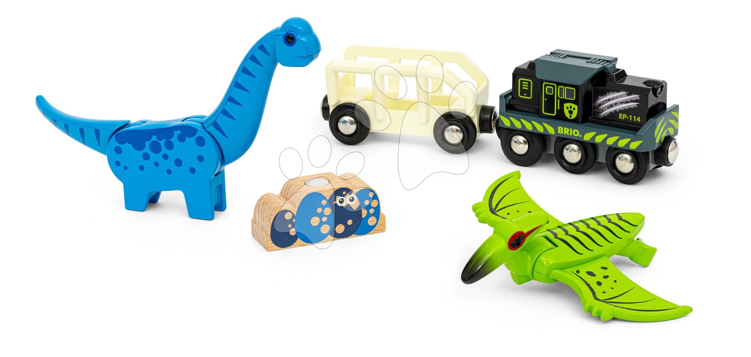 Vláčik elektronický s nákladným vozňom Dinosaur Battery Train BRIO so svetlom pohybom a 2 figúrky dinosaurov s magnetmi od 3 rokov BRIO0967