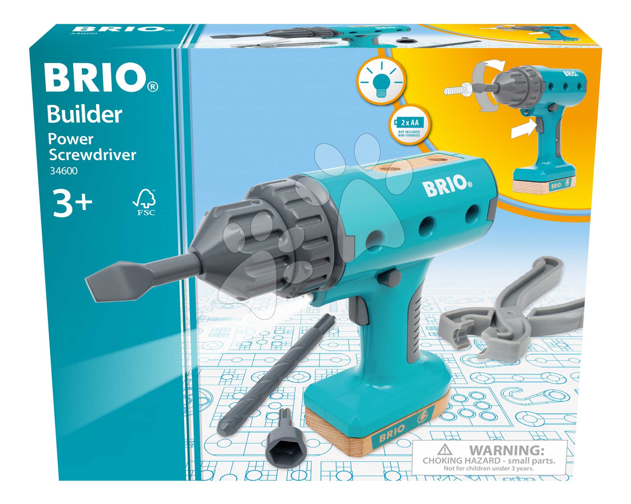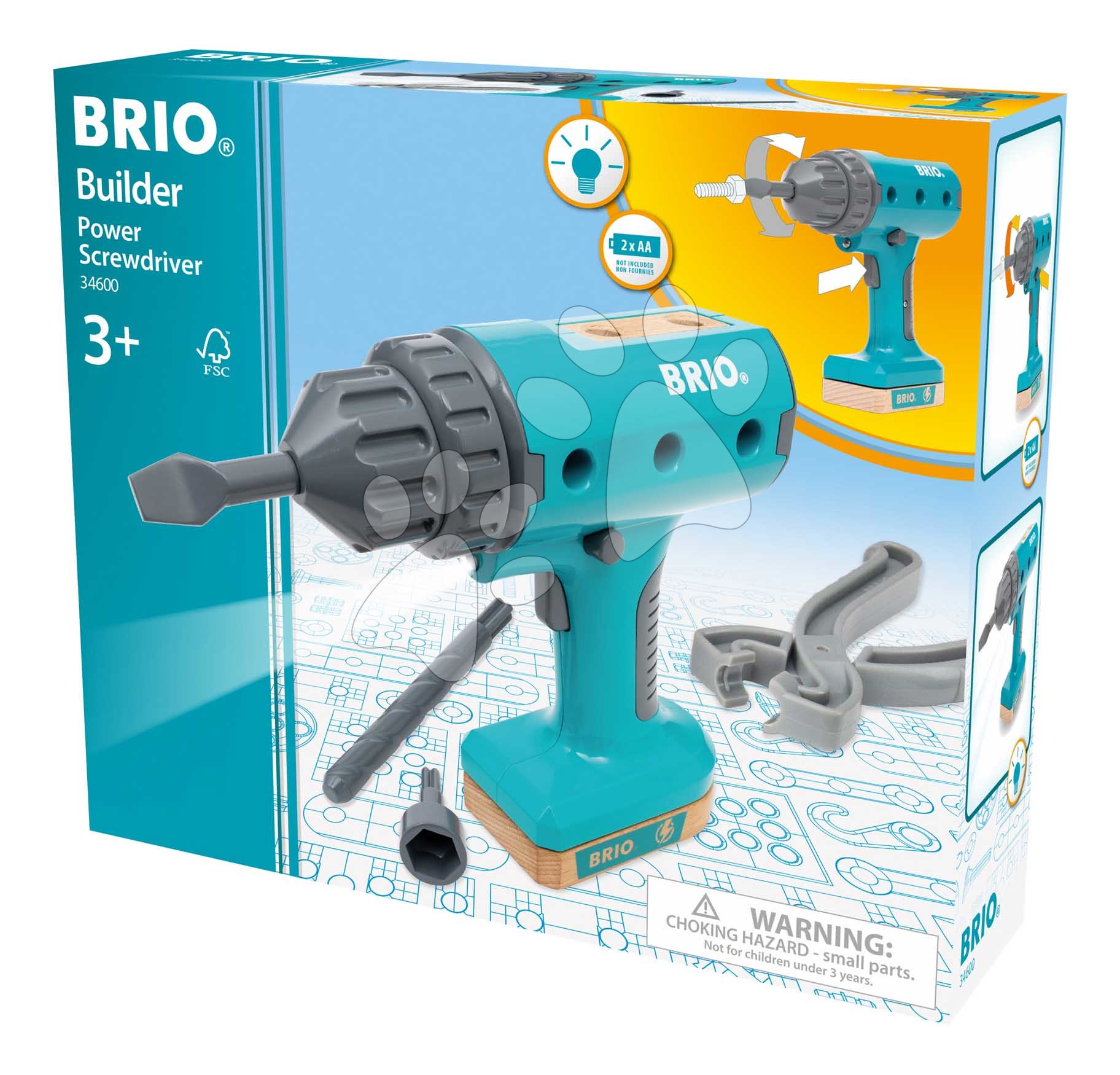 Vŕtačka elektronická so svetlom Builder Power Screwdriver BRIO s 3 vymeniteľnými nadstavcami od 3 rokov BRIO6008